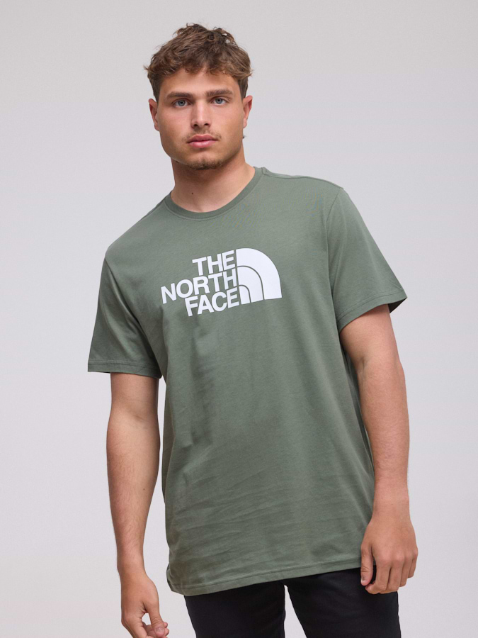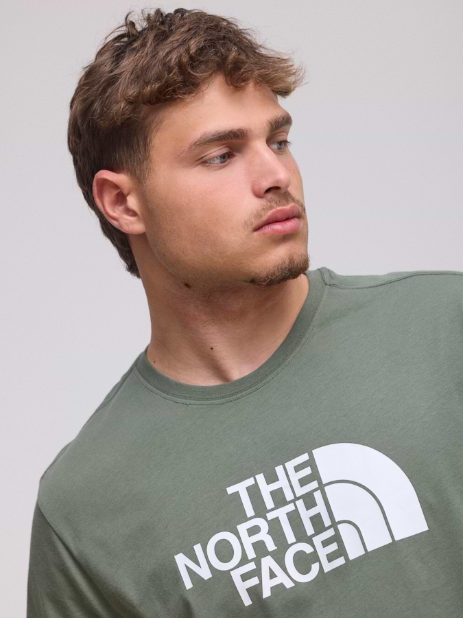 THE NORTH FACE logo t shirt חולצה בצבע ירוק מעושן עם לוגו גדול בחזית המוצר