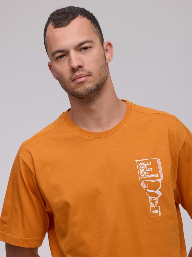 THE NORTH FACE logo t shirt חולצה בצבע כתום עם הדפס צידי walls