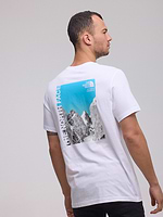 THE NORTH FACE logo t shirt חולצה בצבע לבן לוגו קטן עם הדפס הרים כחול בגב