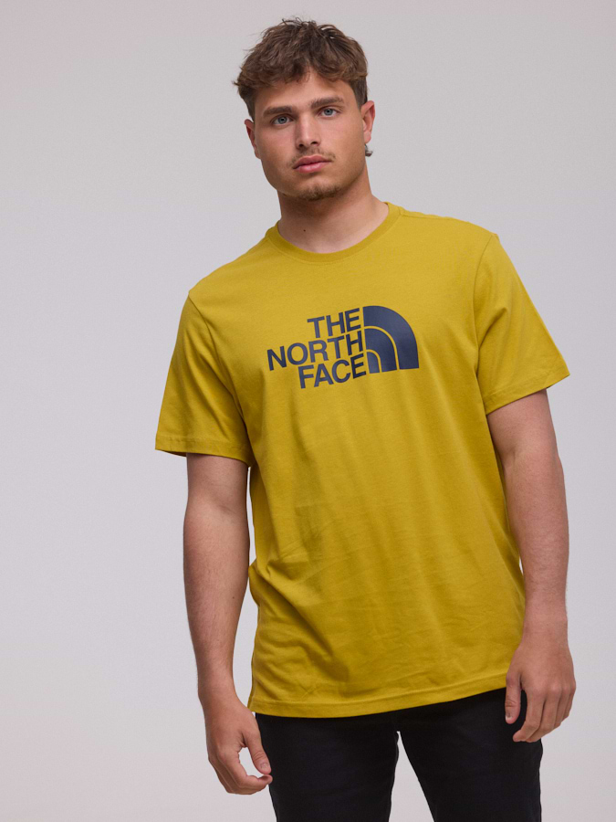THE NORTH FACE logo t shirt חולצה בצבע צהוב עתיק עם לוגו גדול בחזית המוצר