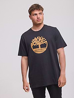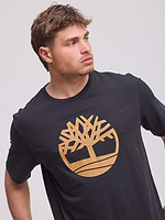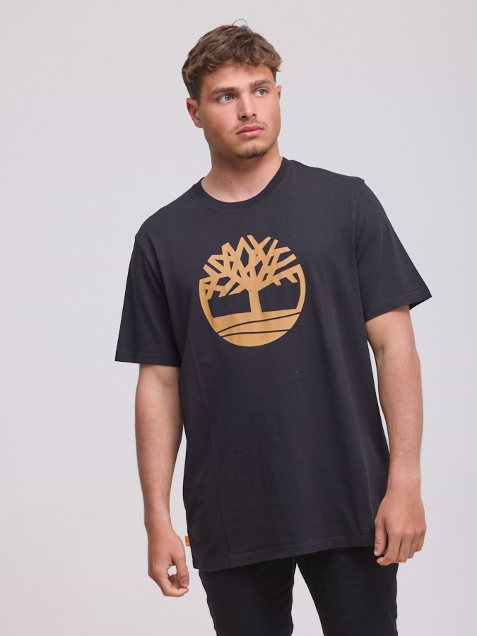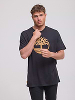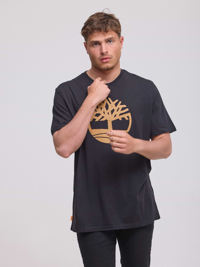 TIMBERLAND black orange big logo t shirt חולצה בצבע שחור עם לוגו המותג בחזית בכתום