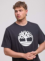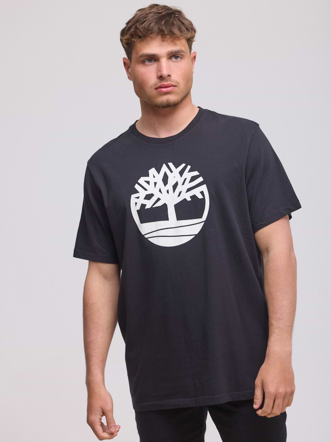 TIMBERLAND black white big logo t shirt חולצה בצבע שחור עם לוגו המותג בחזית בלבן