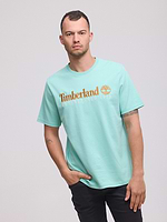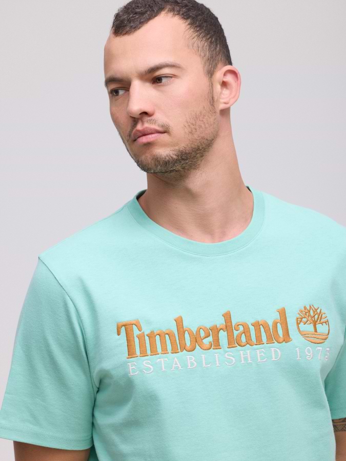 TIMBERLAND blue big logo t shirt חולצה בצבע תכלת עם רקמת המותג בכתום