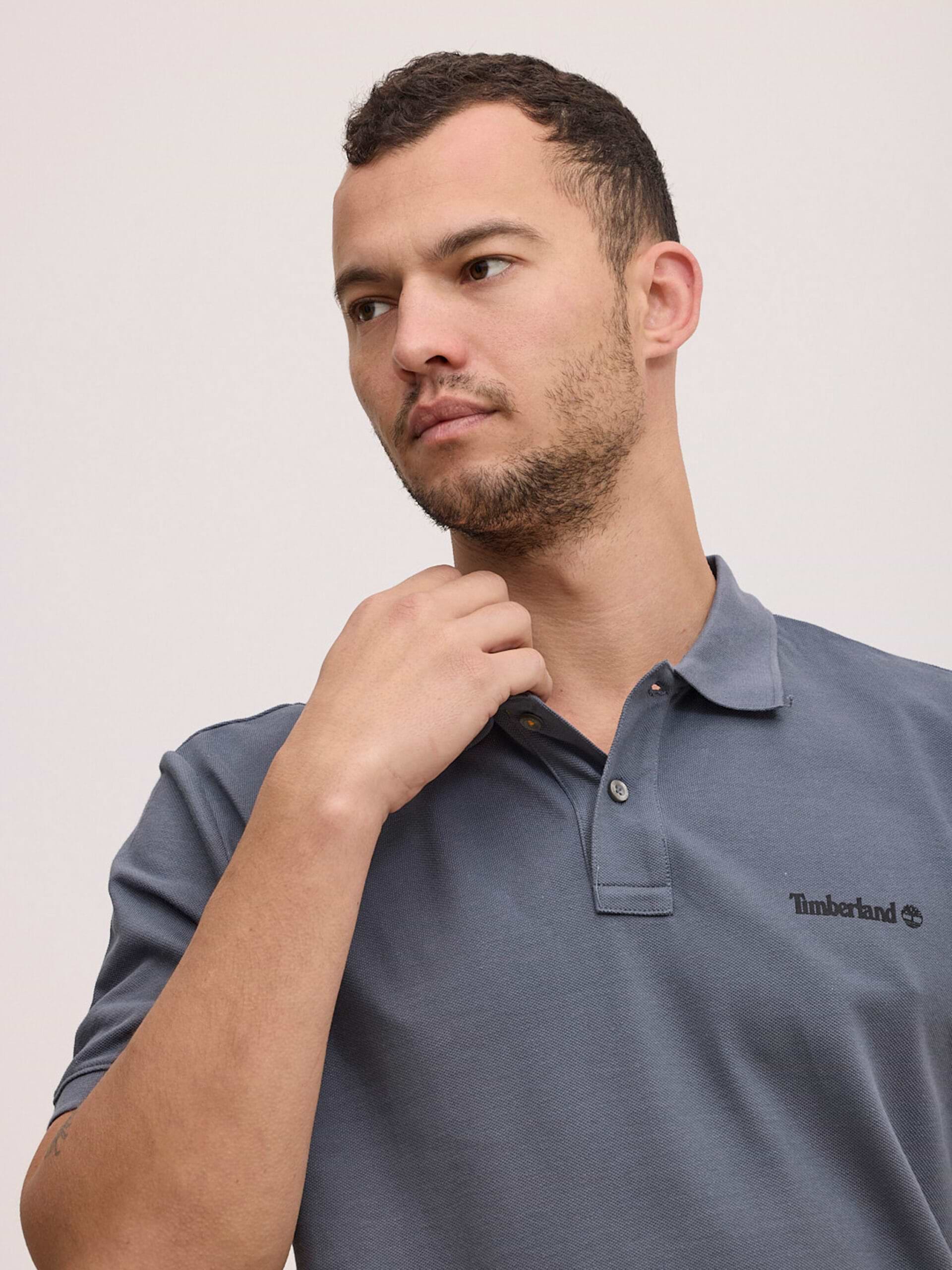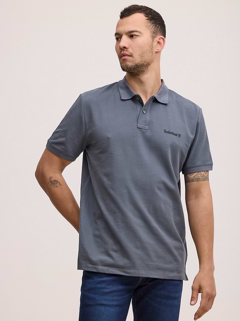 TIMBERLAND gray polo פולו בצבע אפור בטון עם לוגו המותג כתב