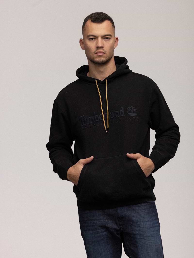 TIMBERLAND hoodie black logo קפוצון בצבע שחור לוגו טון על טון