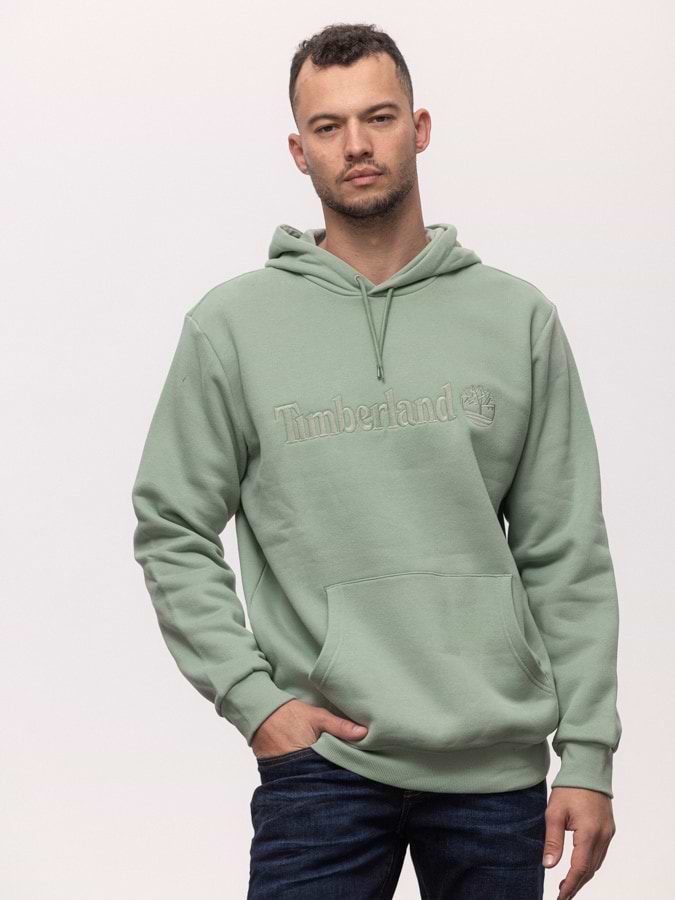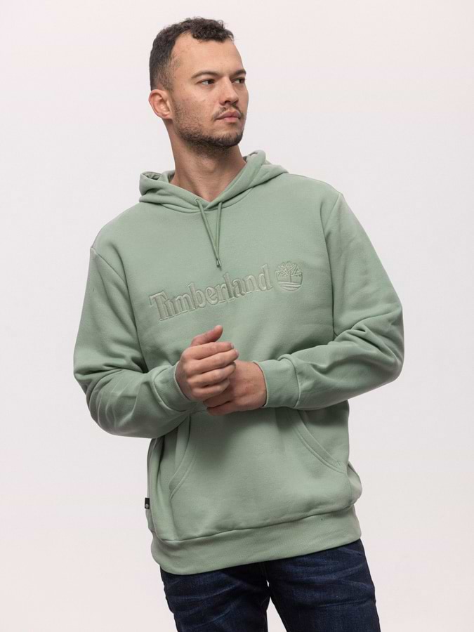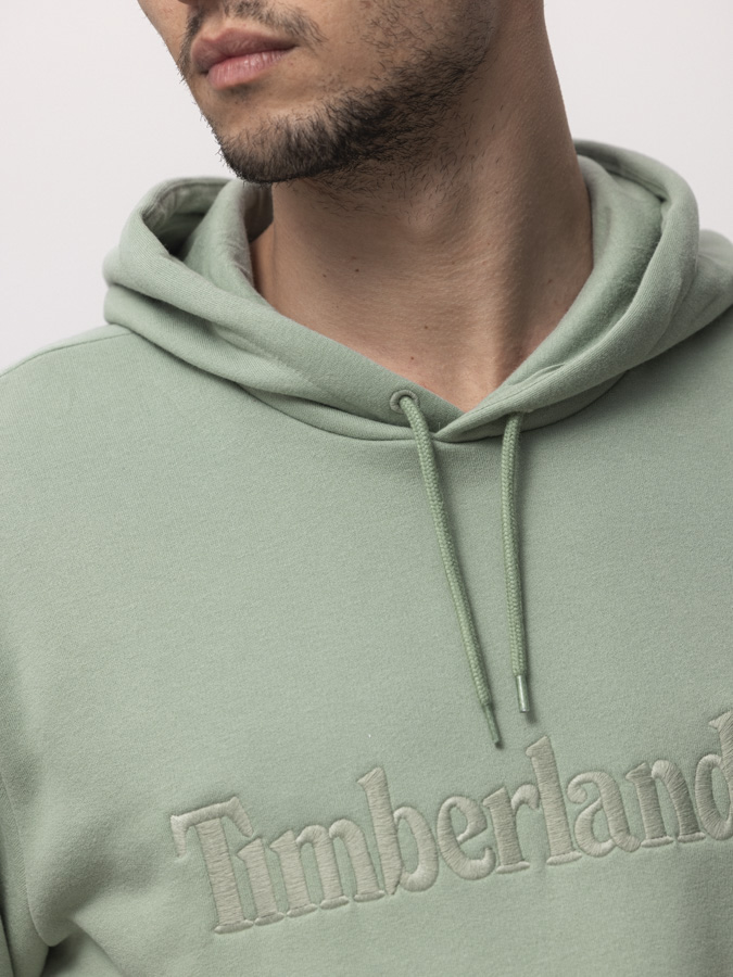 TIMBERLAND hoodie light green big logo קפוצון בצבע פיסטוק עם לוגו טון על טון בחזית המוצר