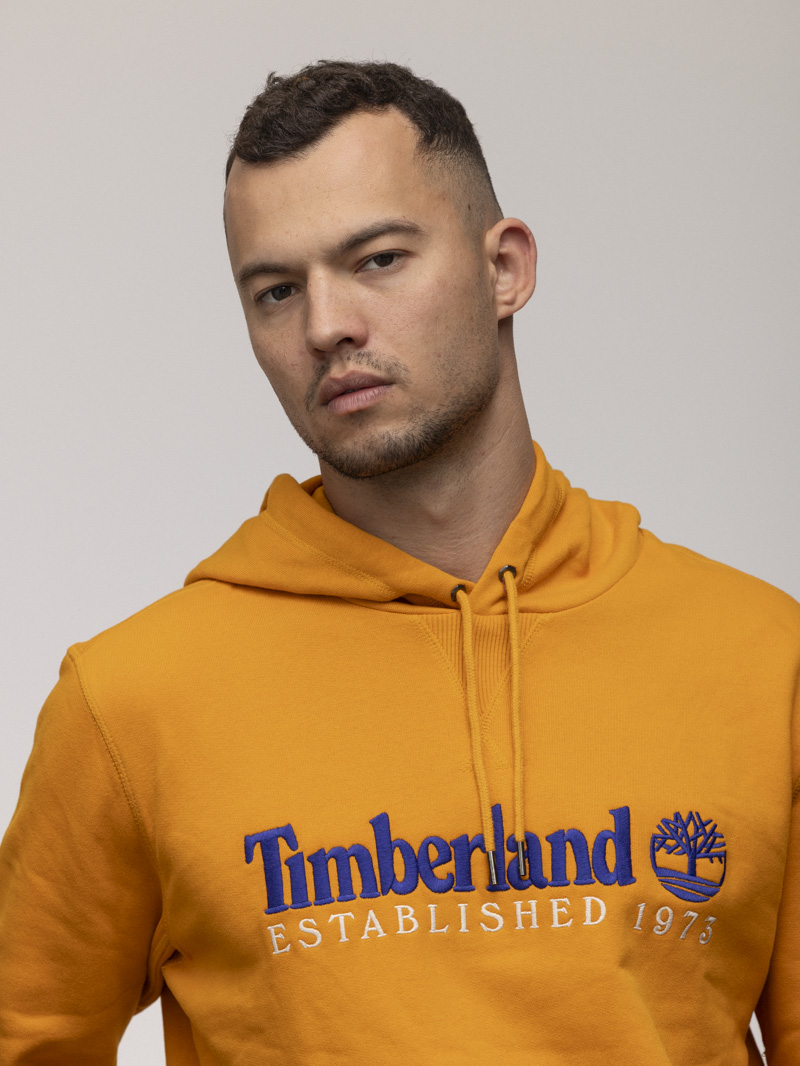 TIMBERLAND hoodie orange blue logo קפוצון בצבע כתום לוגו כחול
