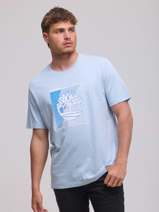 TIMBERLAND light blue big logo t shirt חולצה בצבע תכלת עדין עם לוגו המותג בחזית המוצר