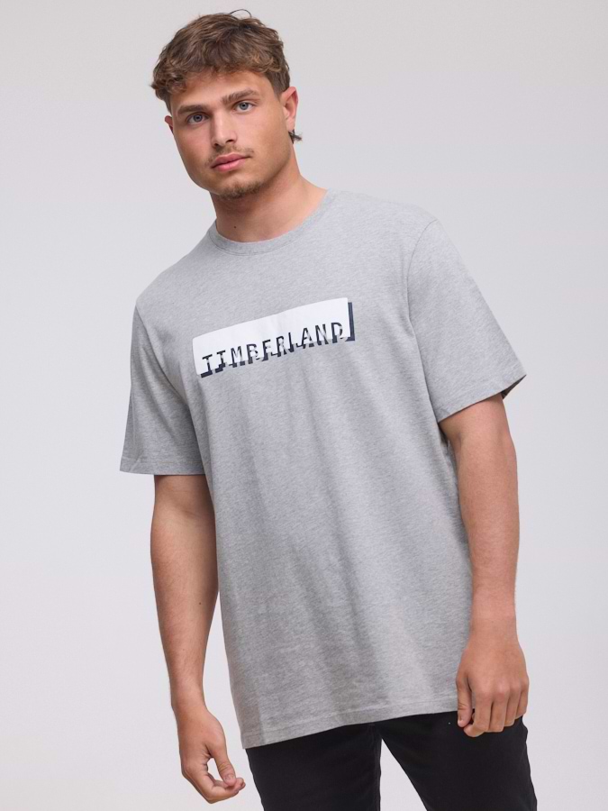TIMBERLAND logo t shirt חולצה בצבע אפור עם לוגו המותג בחזית המוצר