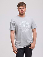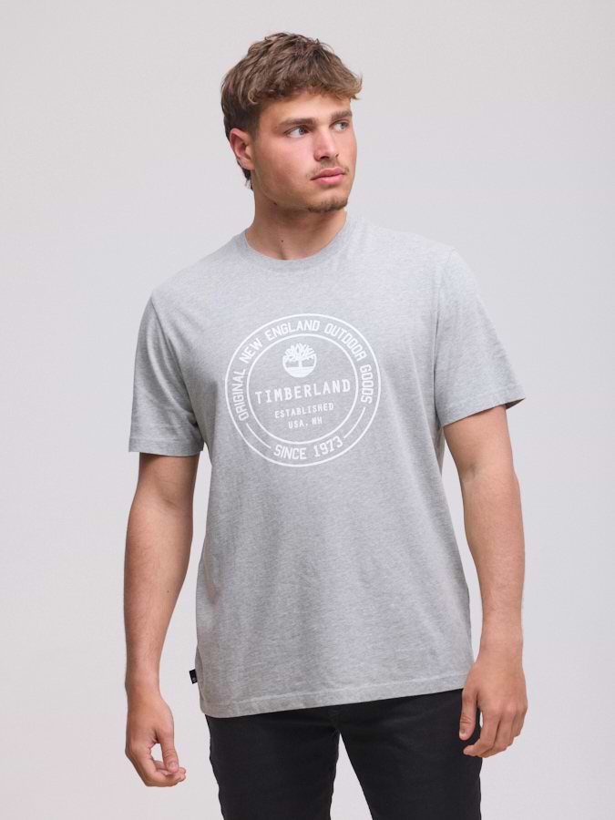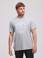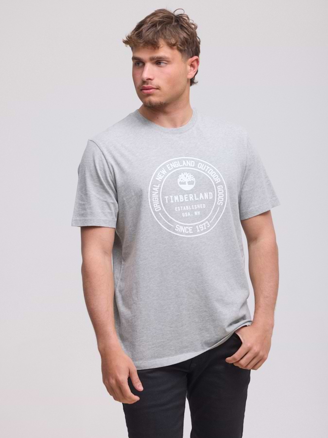 TIMBERLAND logo t shirt חולצה בצבע אפור עם לוגו המותג עיגול בלבן