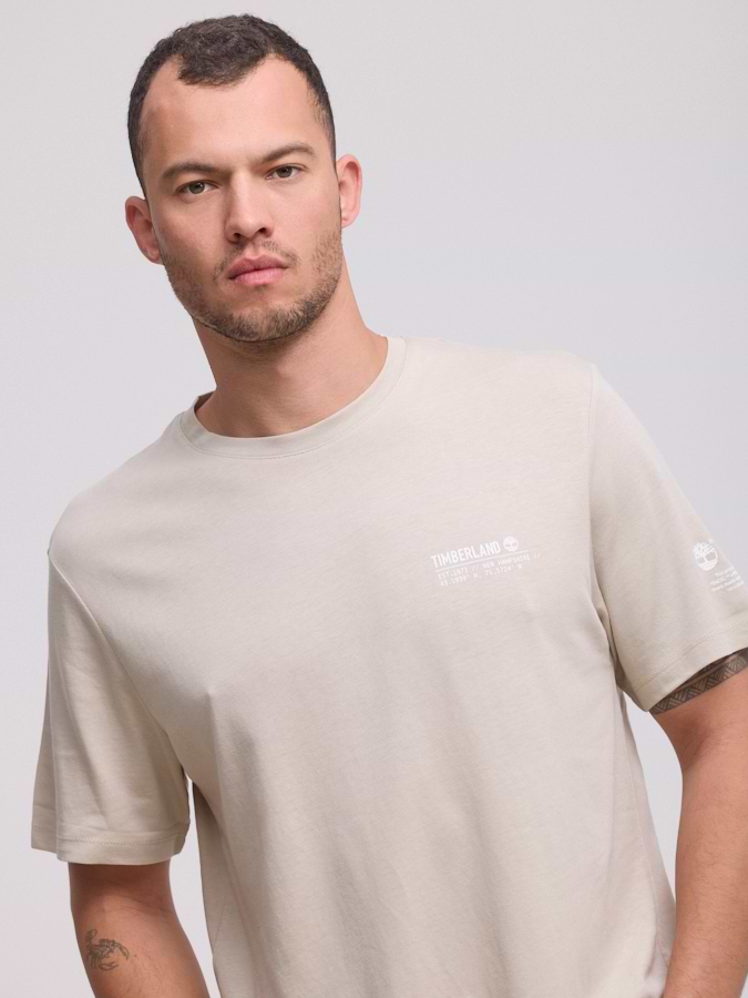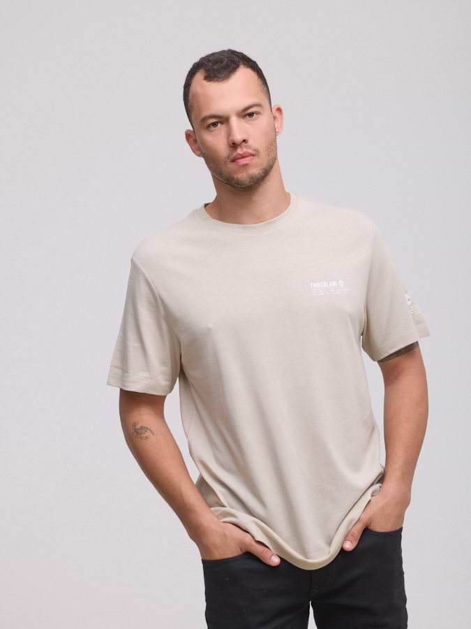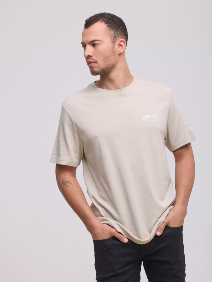 TIMBERLAND logo t shirt חולצה בצבע בז’ עם לוגו צידי מלל