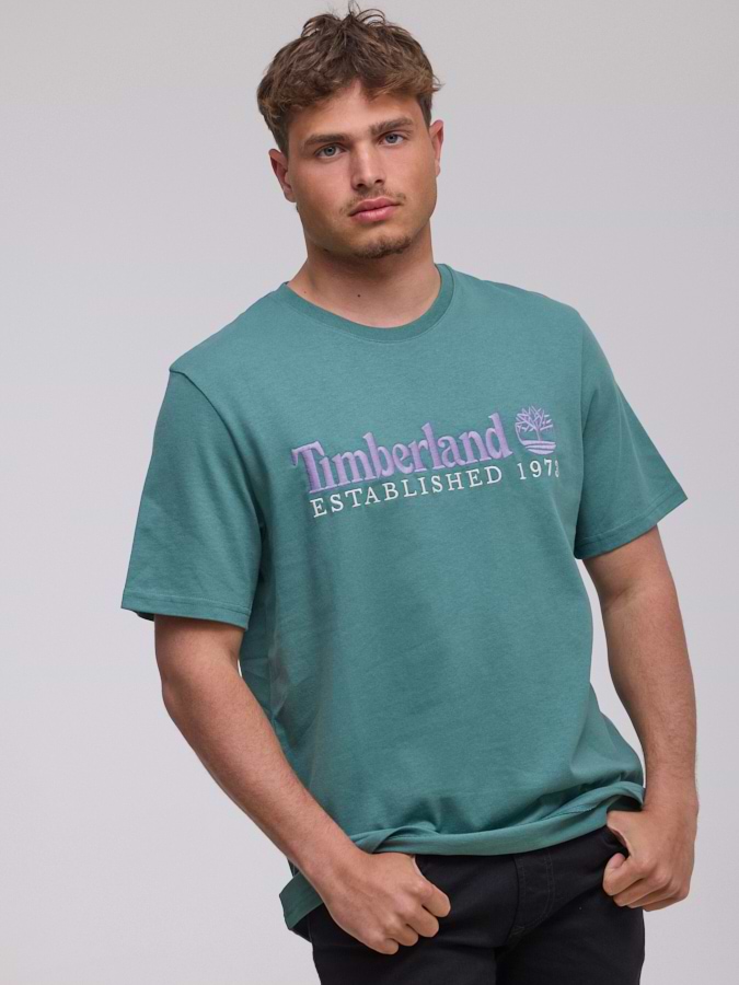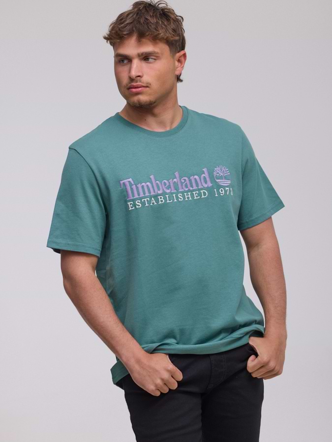 TIMBERLAND logo t shirt חולצה בצבע טורקיז עם לוגו סגול במרכז המוצר