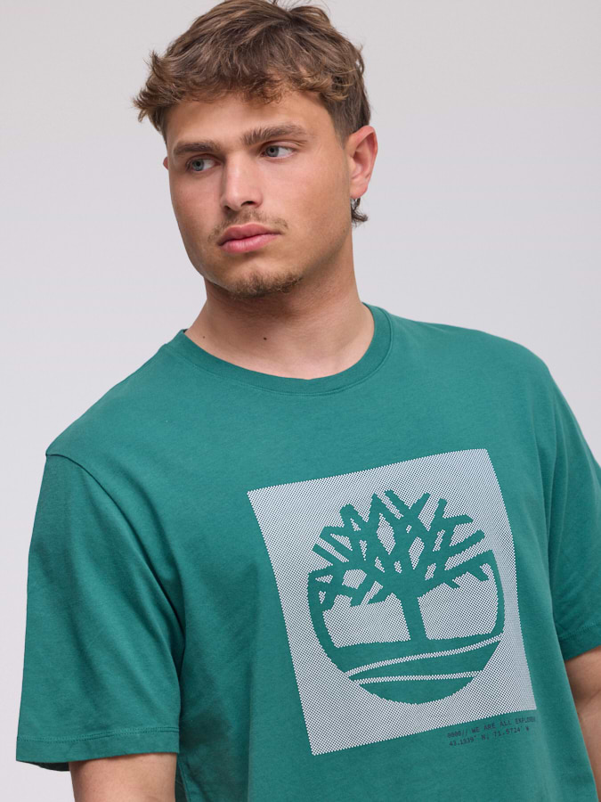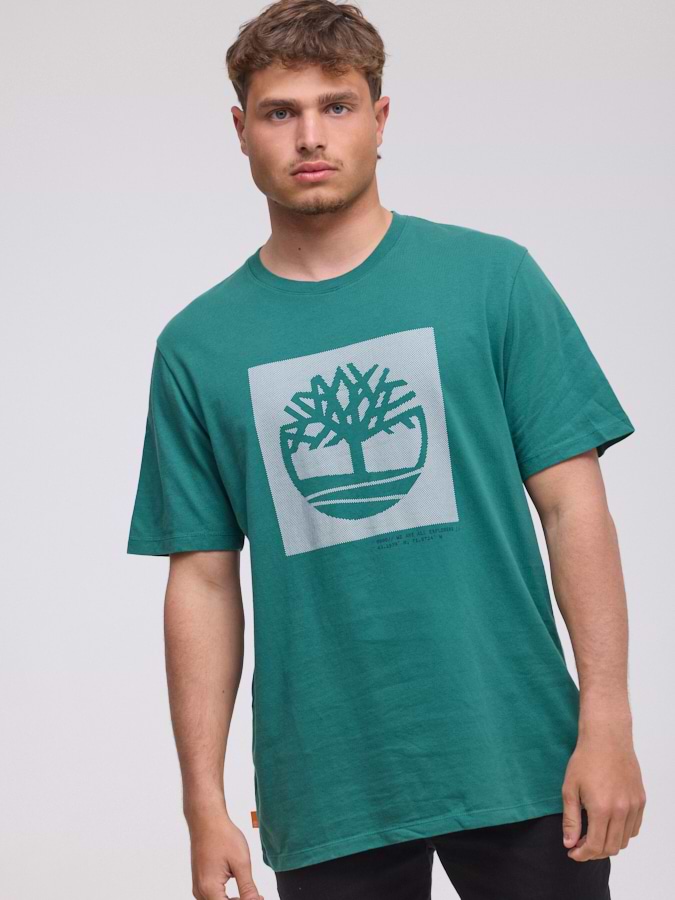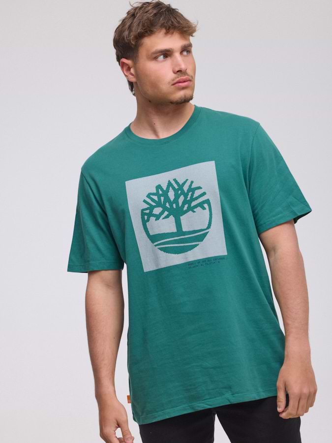 TIMBERLAND logo t shirt חולצה בצבע טורקיז עם ריבוע המותג בחזית