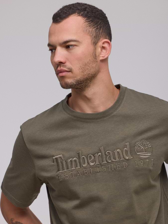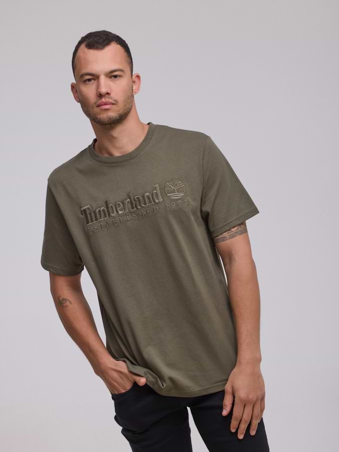 TIMBERLAND logo t shirt חולצה בצבע ירוק עם לוגו טון על טון רקמה