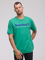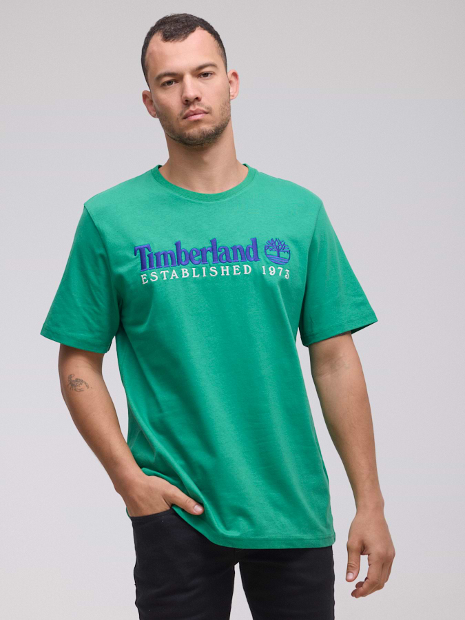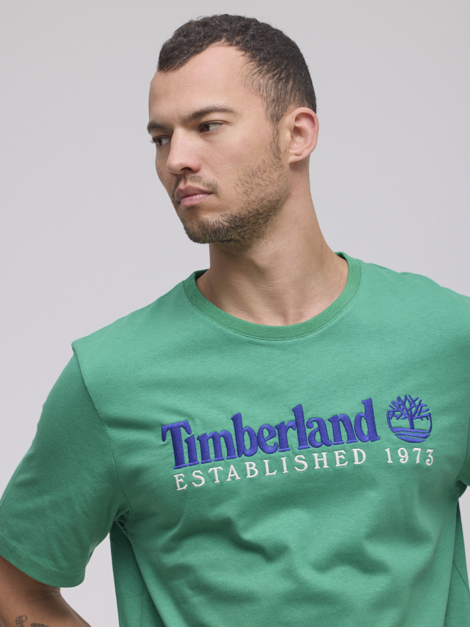 TIMBERLAND logo t shirt חולצה בצבע ירוק עם רקמה בצבע כחול בחזית