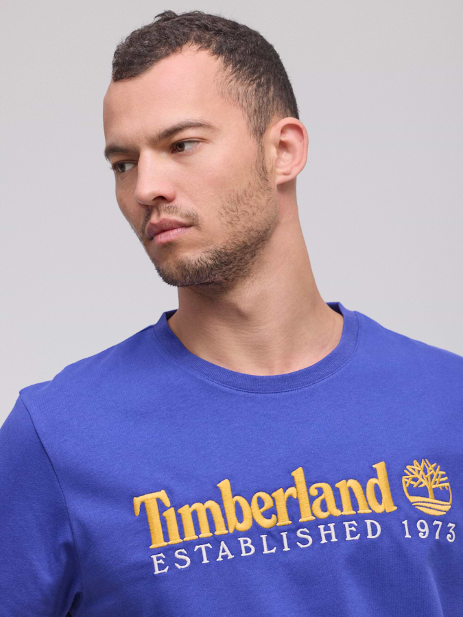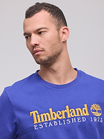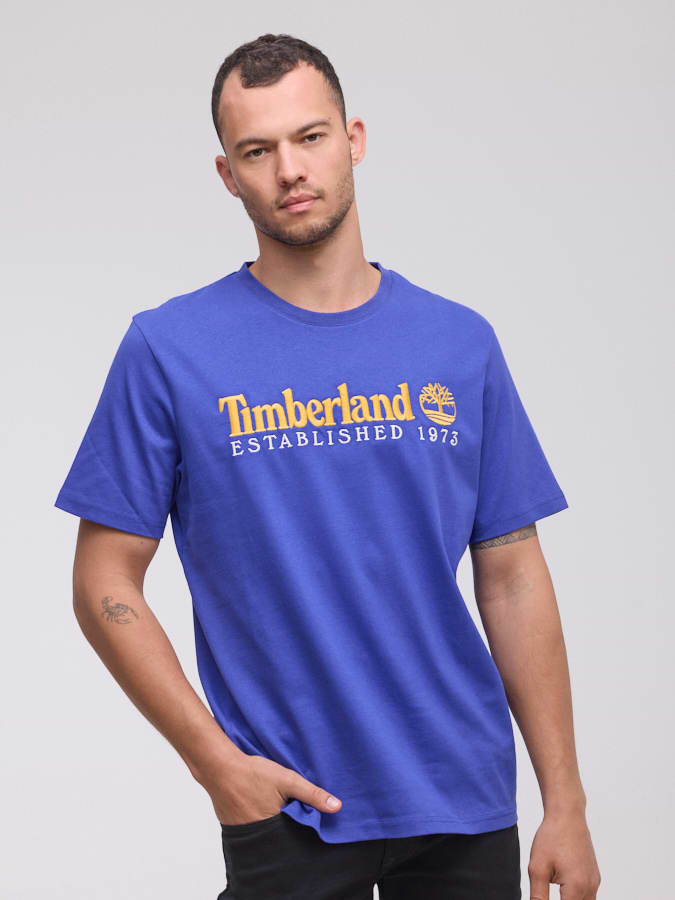 TIMBERLAND logo t shirt חולצה בצבע כחול סגול לוגו צהוב רקמה