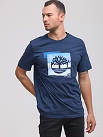 TIMBERLAND logo t shirt חולצה בצבע כחול עם ריבוע המותג בתכלת