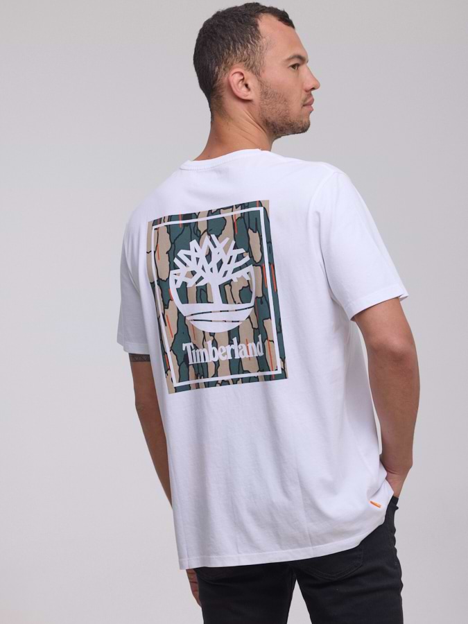 TIMBERLAND logo t shirt חולצה בצבע לבן עם הדפס אחורי