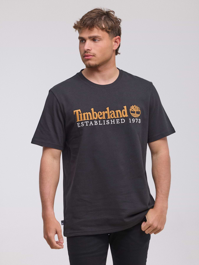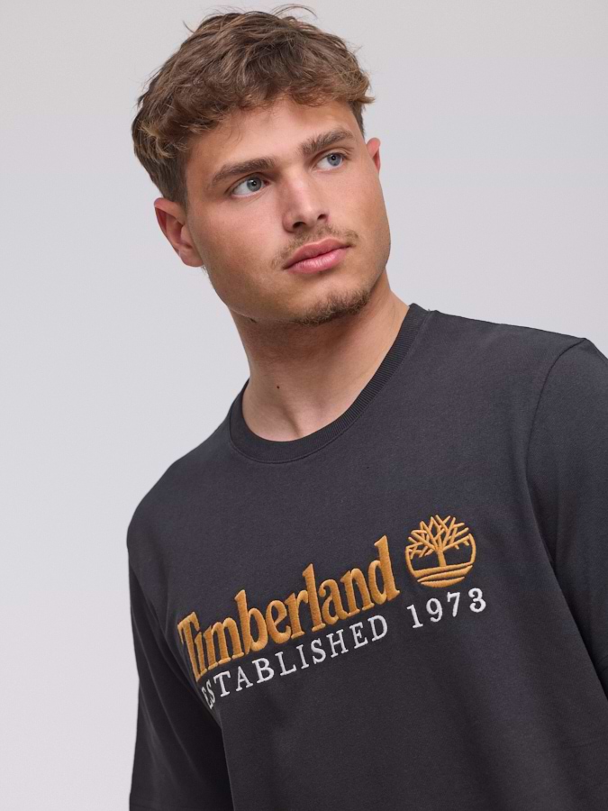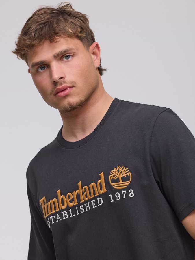 TIMBERLAND logo t shirt חולצה בצבע שחור אבן עם רקמת המותג בכתום