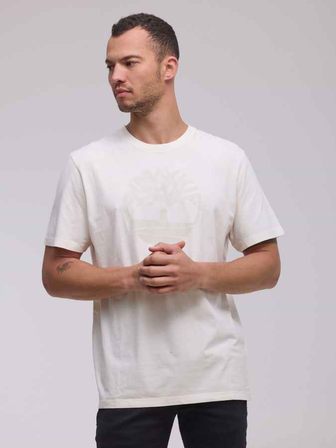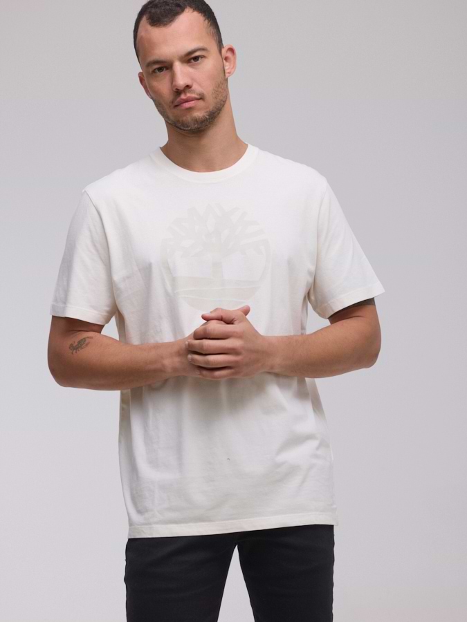 TIMBERLAND logo t shirt חולצה בצבע שמנת עם לוגו לבן במרכז המוצר