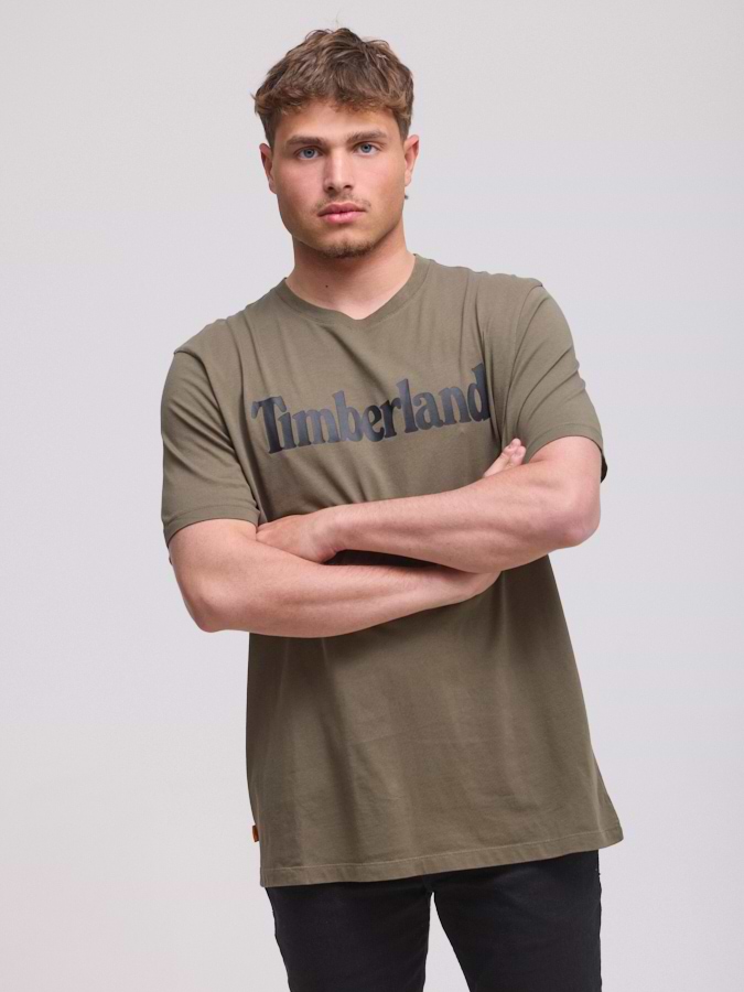 TIMBERLAND olive green big logo t shirt חולצה בצבע ירוק זית עם הדפס המותג בחזית המוצר