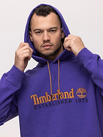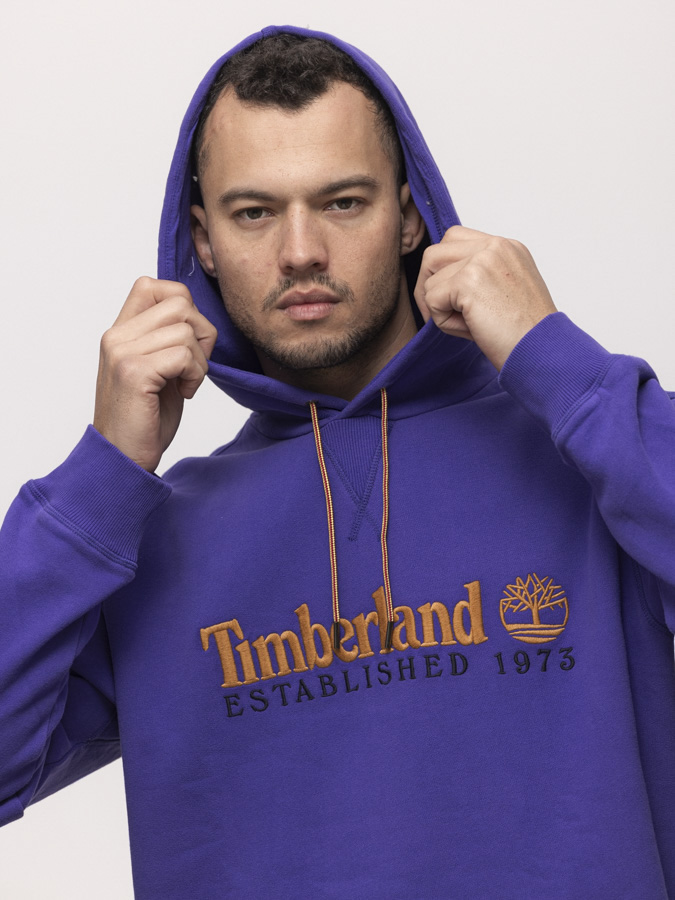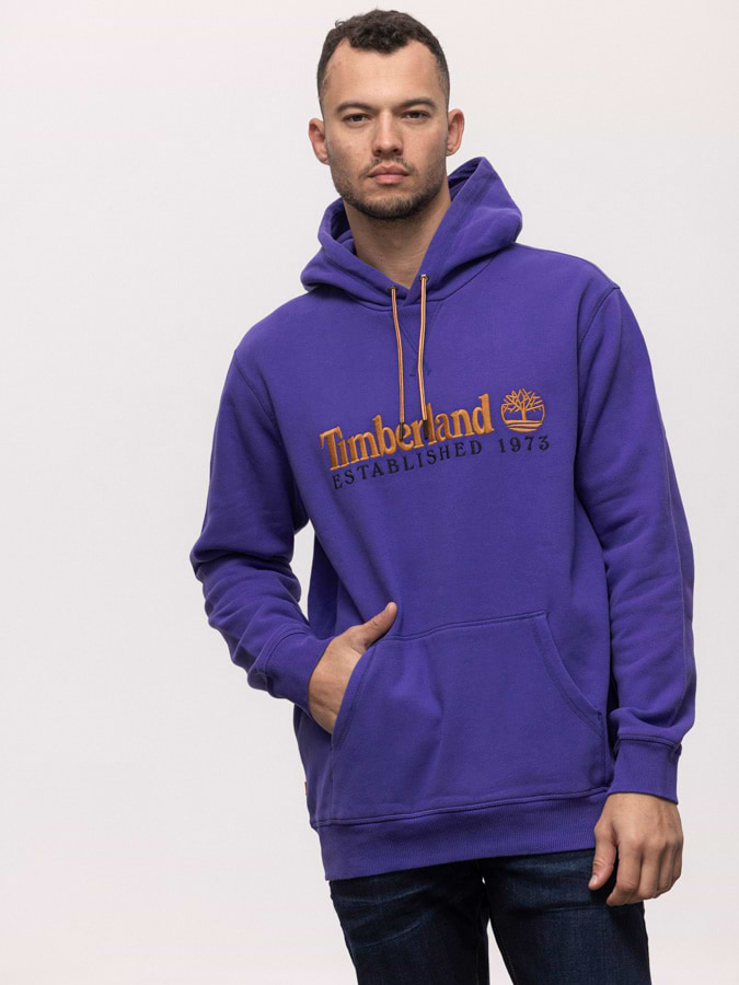 TIMBERLAND purple orange big logo hoodie קפוצון בצבע סגול עם לוגו כתום רקום בחזית המוצר