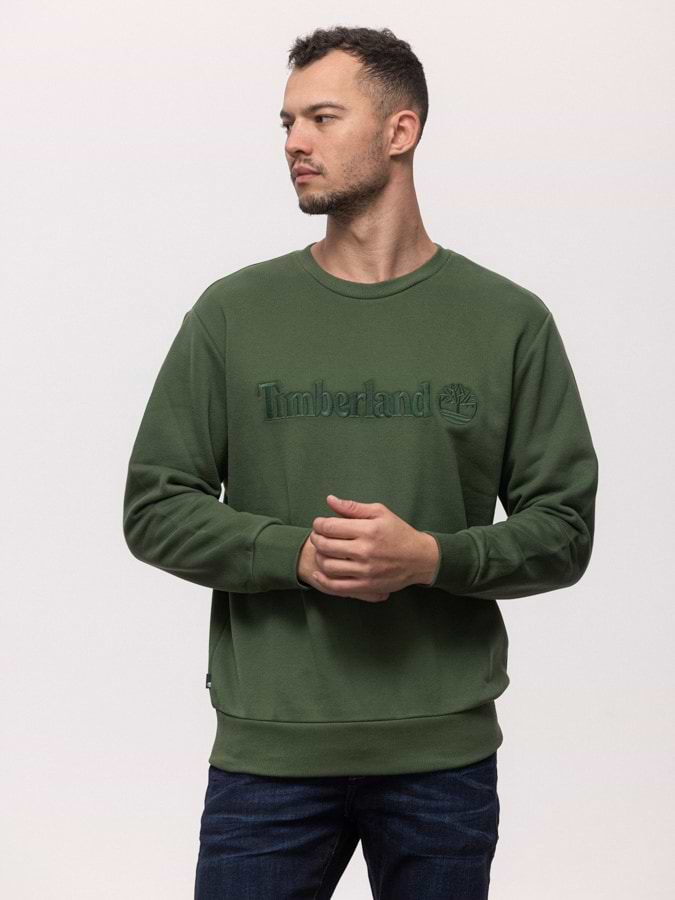 TIMBERLAND sweatshirt green logo סווטשירט בצבע ירוק על ירוק לוגו בחזית המוצר