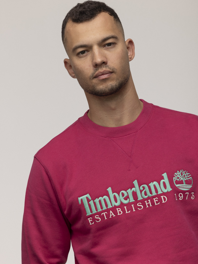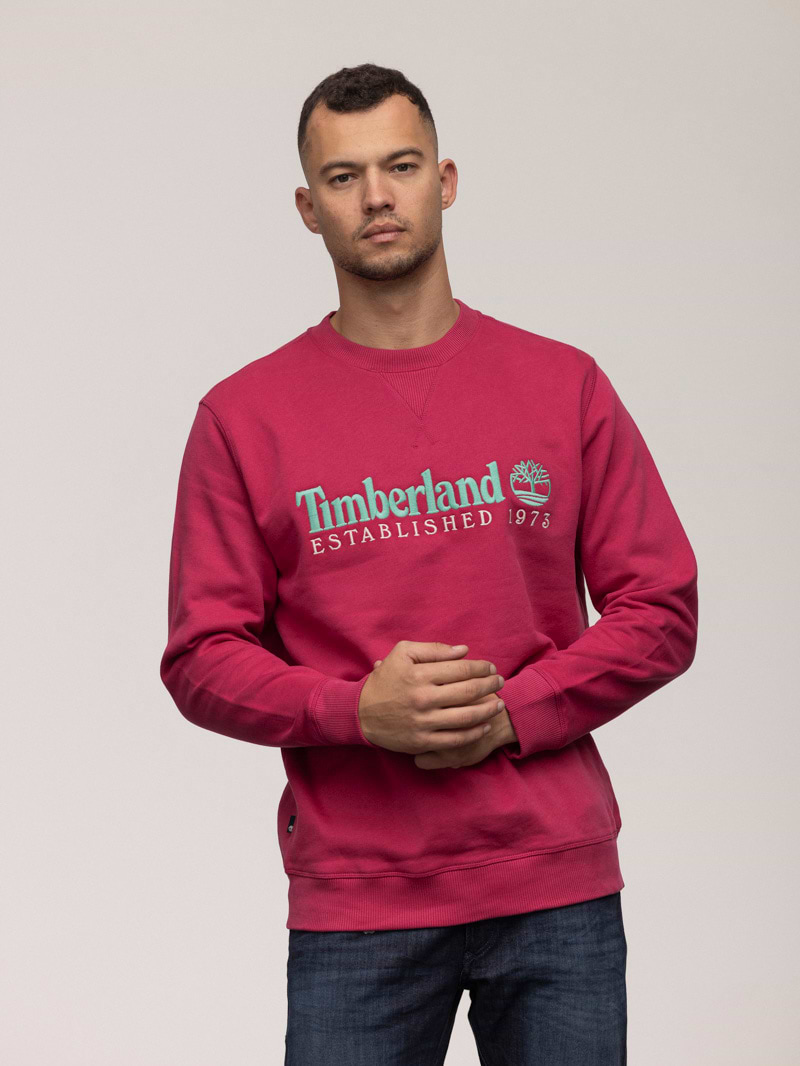 TIMBERLAND sweatshirt pink blue big logo סווטשירט בצבע ורוד עם רקמה בצבע תכלת בחזית