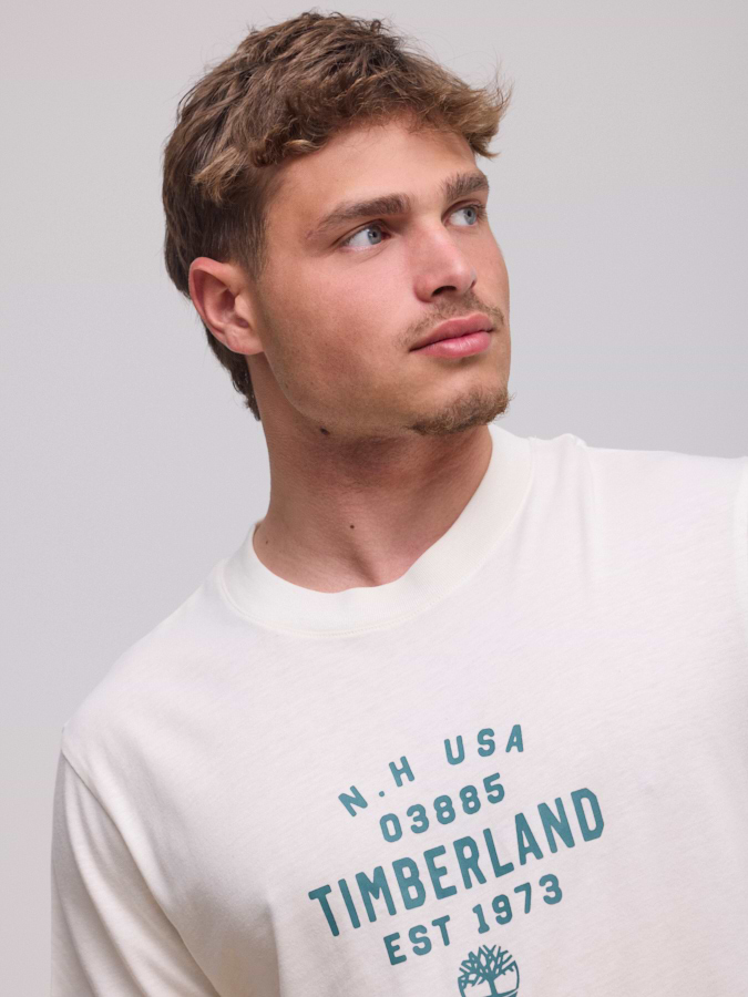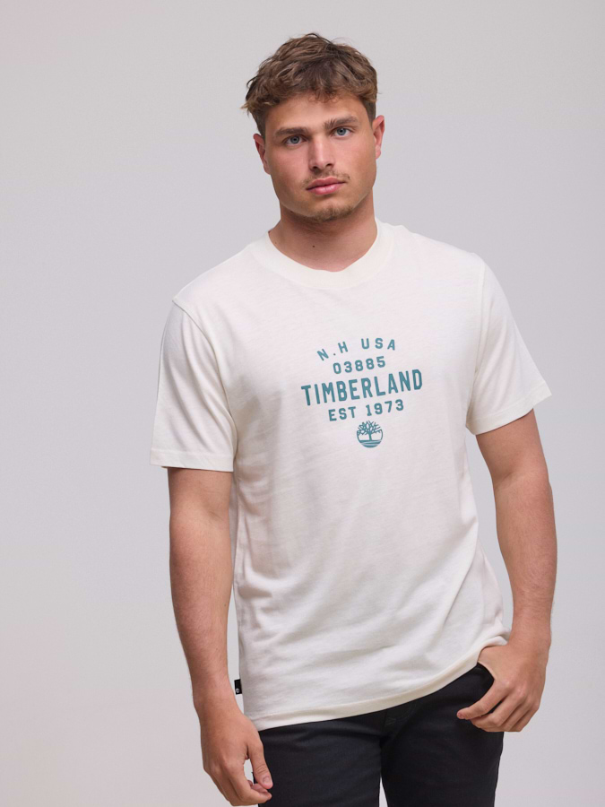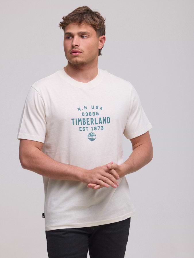 TIMBERLAND white big logo t shirt חולצה בצבע לבן עם הדפס כחול 03885