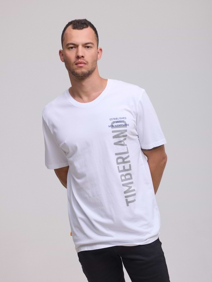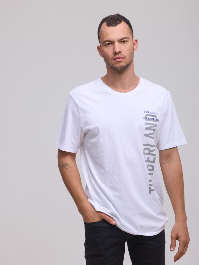 TIMBERLAND white big logo t shirt חולצה בצבע לבן עם לוגו המותג אורכי