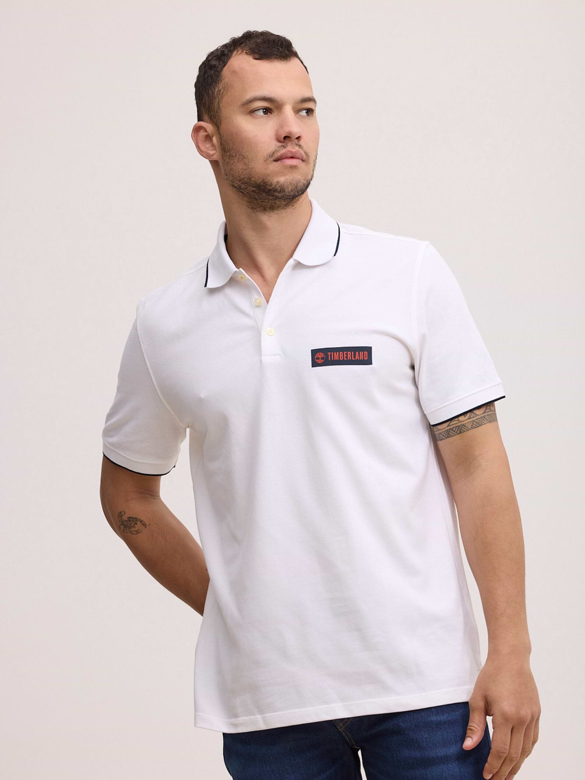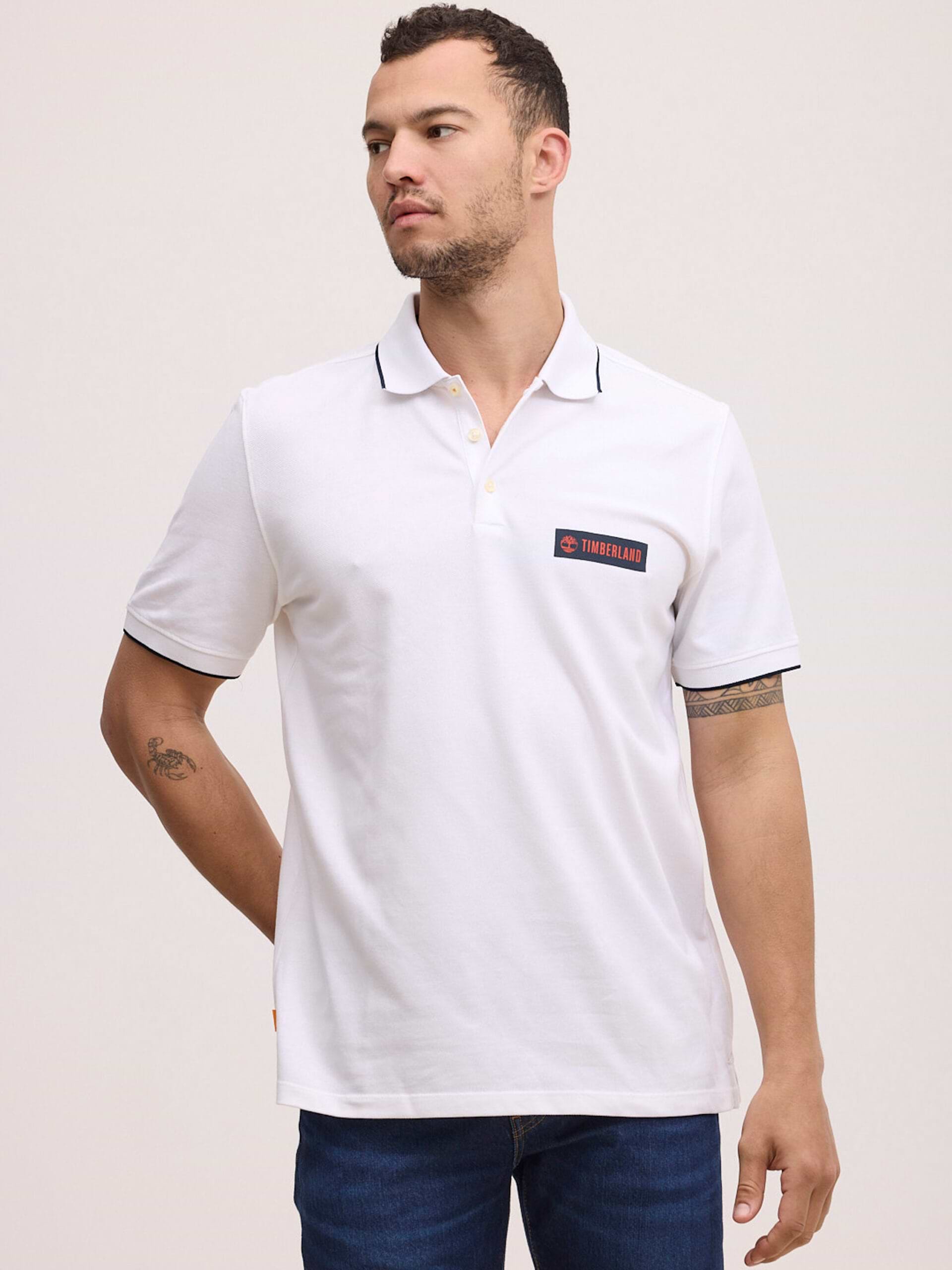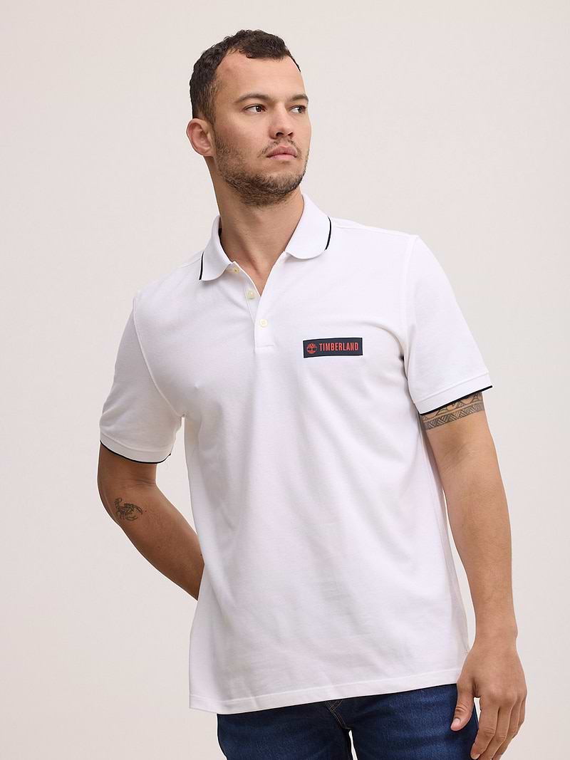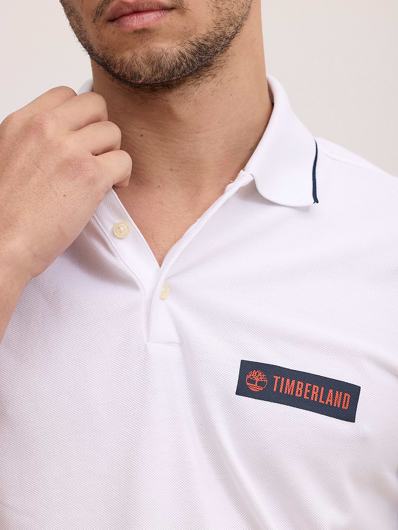 TIMBERLAND white polo פולו בצבע לבן עם פס בצווארון ולוגו צידי