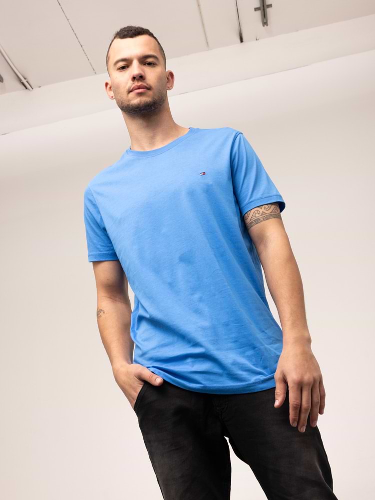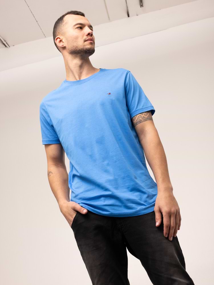 TOMMY HILFIGER basic blue t shirt חולצה בצבע כחול בייסיק עם לוגו קטן