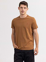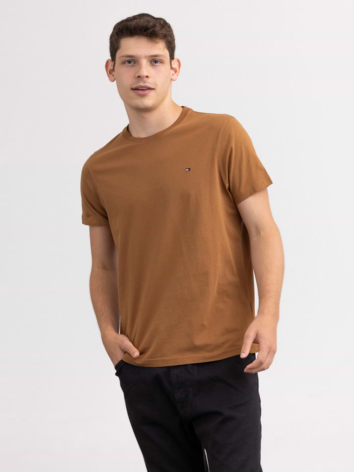TOMMY HILFIGER basic brown t shirt חולצת בייסיק בצבע חום כאמל לוגו קטן בצד