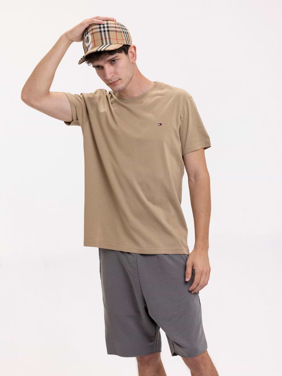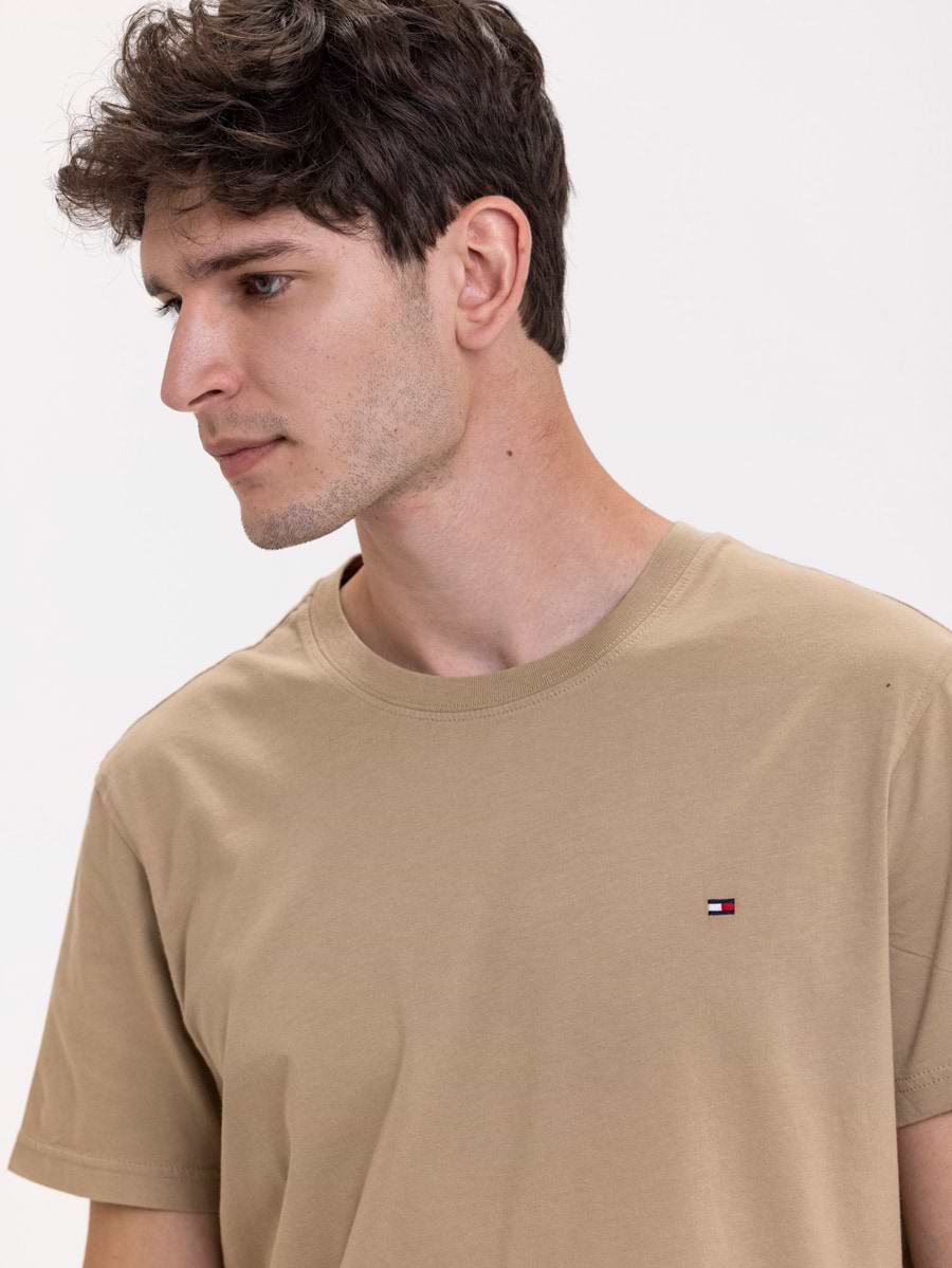 TOMMY HILFIGER beige basic t shirt חולצה בייסיק בצבע כאמל EXTRA SLIM