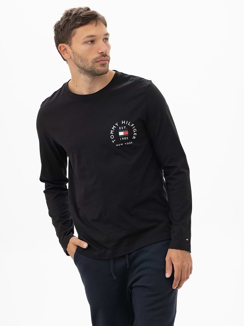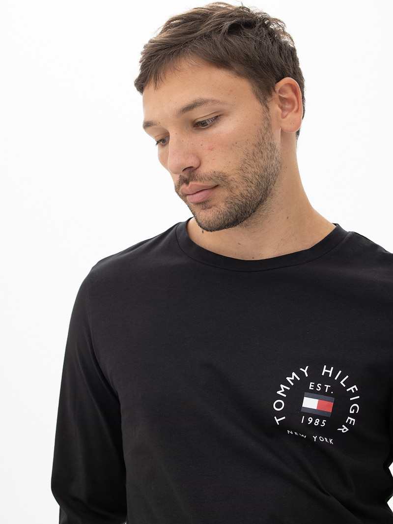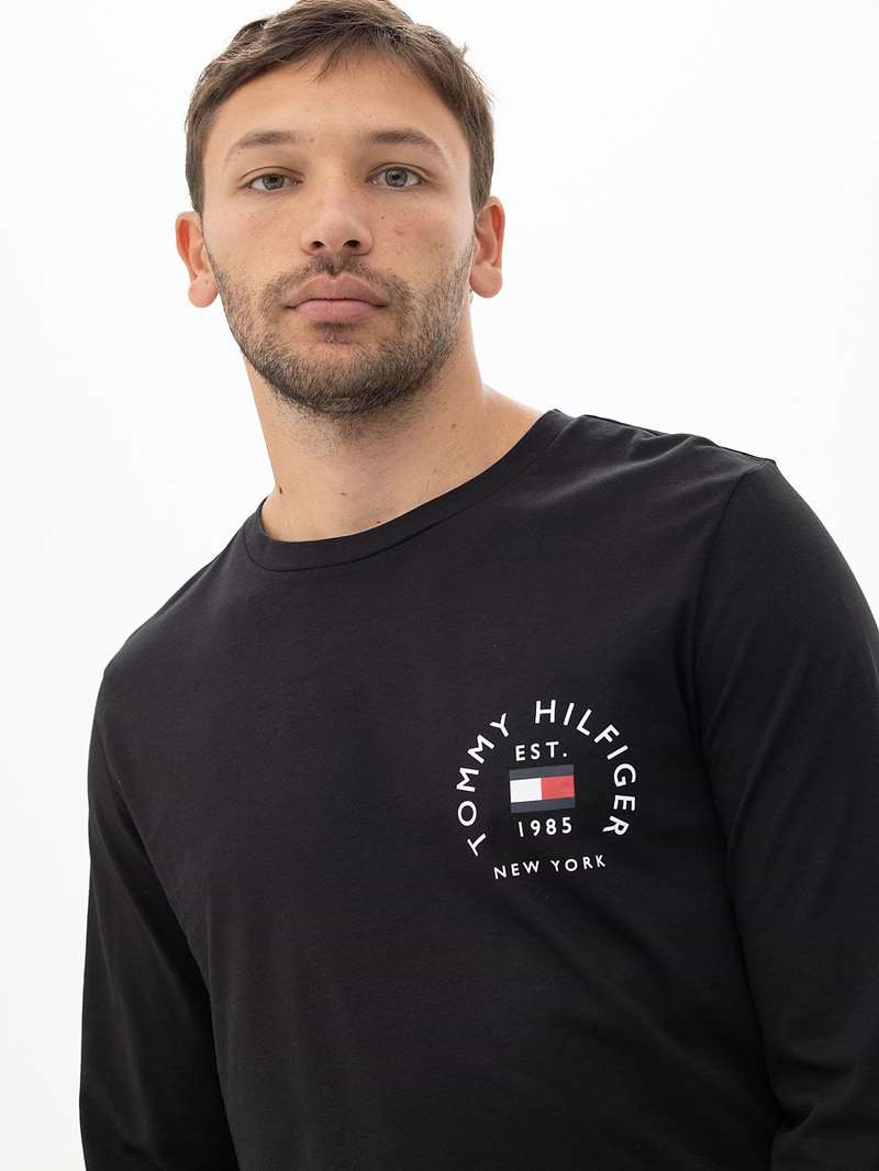 TOMMY HILFIGER black long sleeve t shirt חולצה בצבע שחור עיגול המותג שרוול ארוך