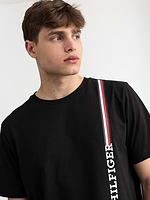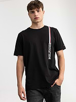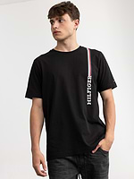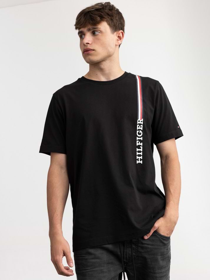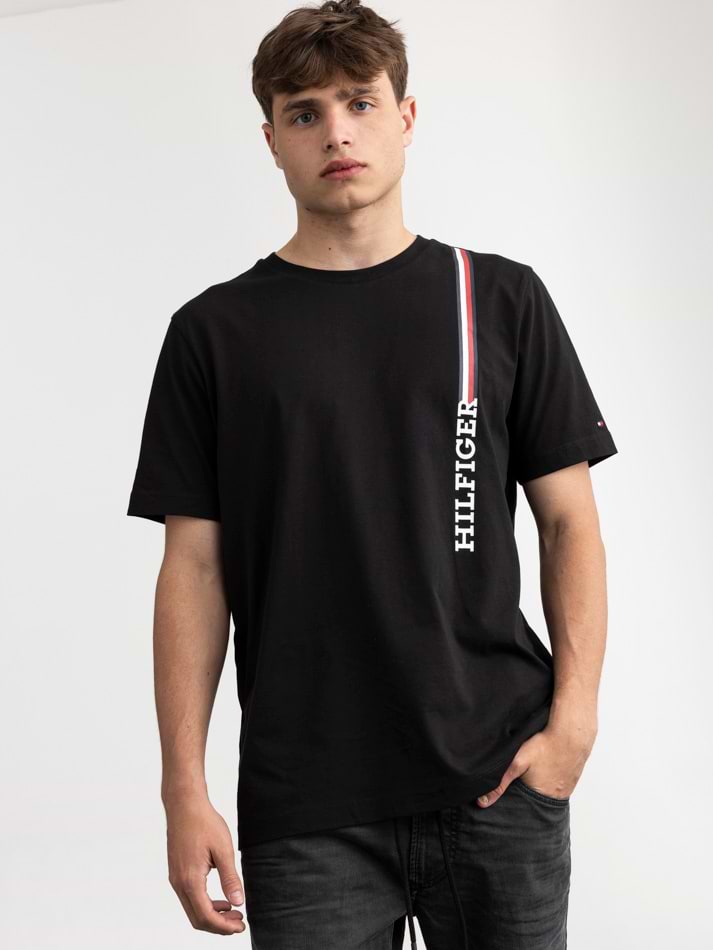 TOMMY HILFIGER black stripe print t shirt חולצה בצבע שחור עם פס לאורך המוצר