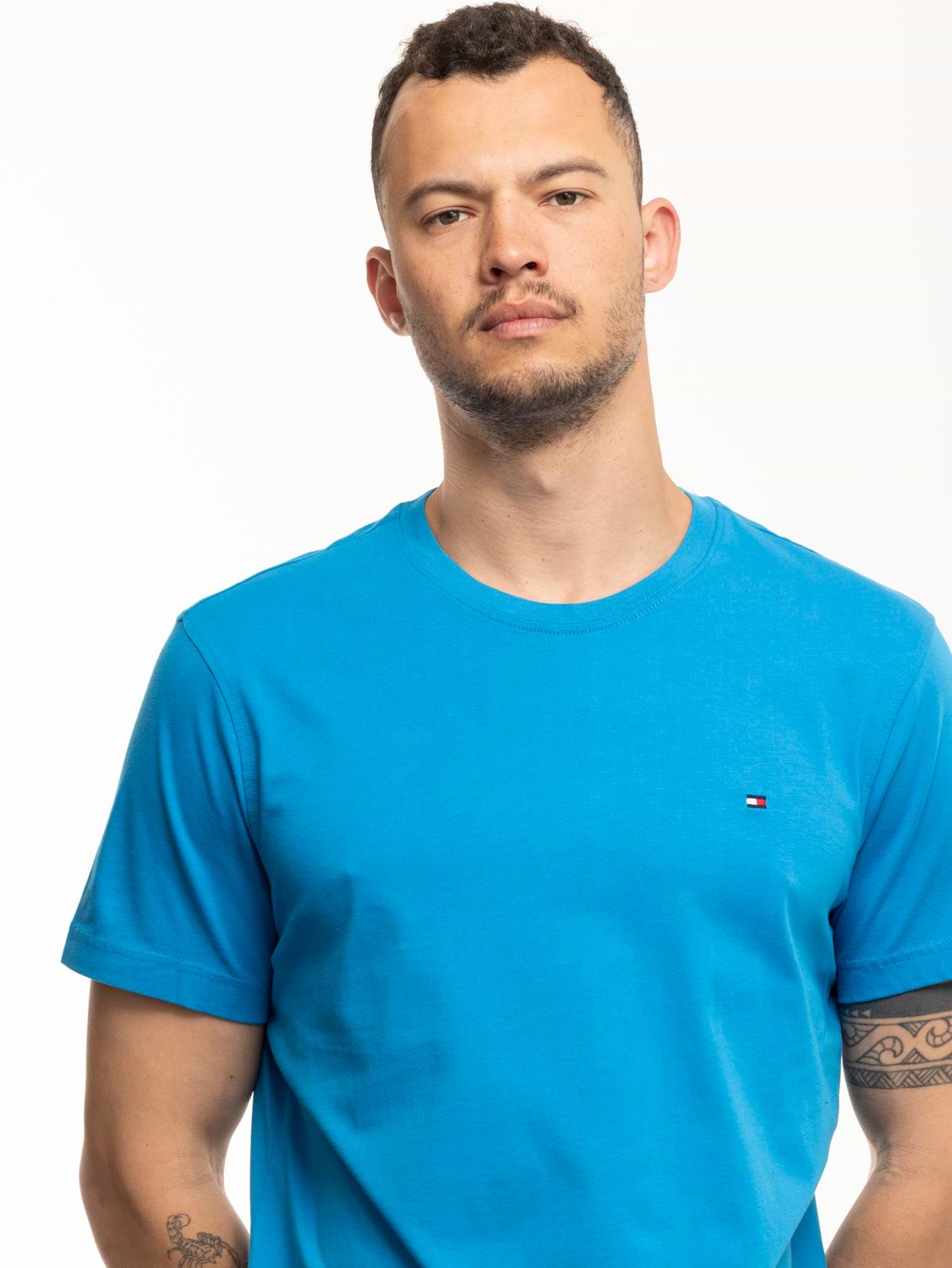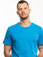 TOMMY HILFIGER blue basic t shirt חולצת בייסיק בצבע כחול ניאון עם לוגו המותג צידי (EXTRA SLIM)