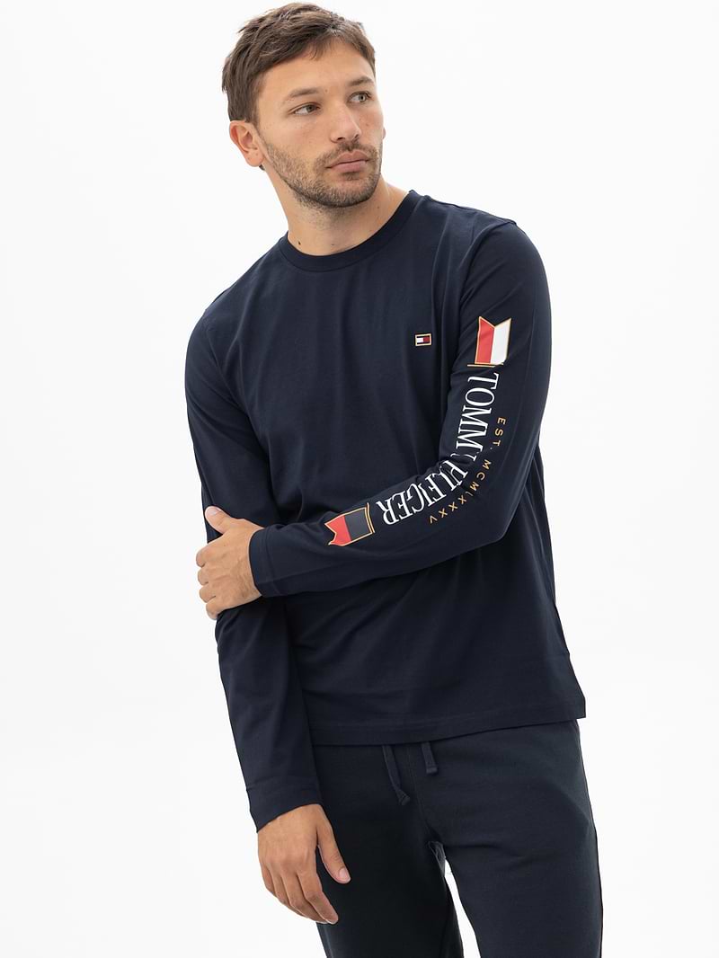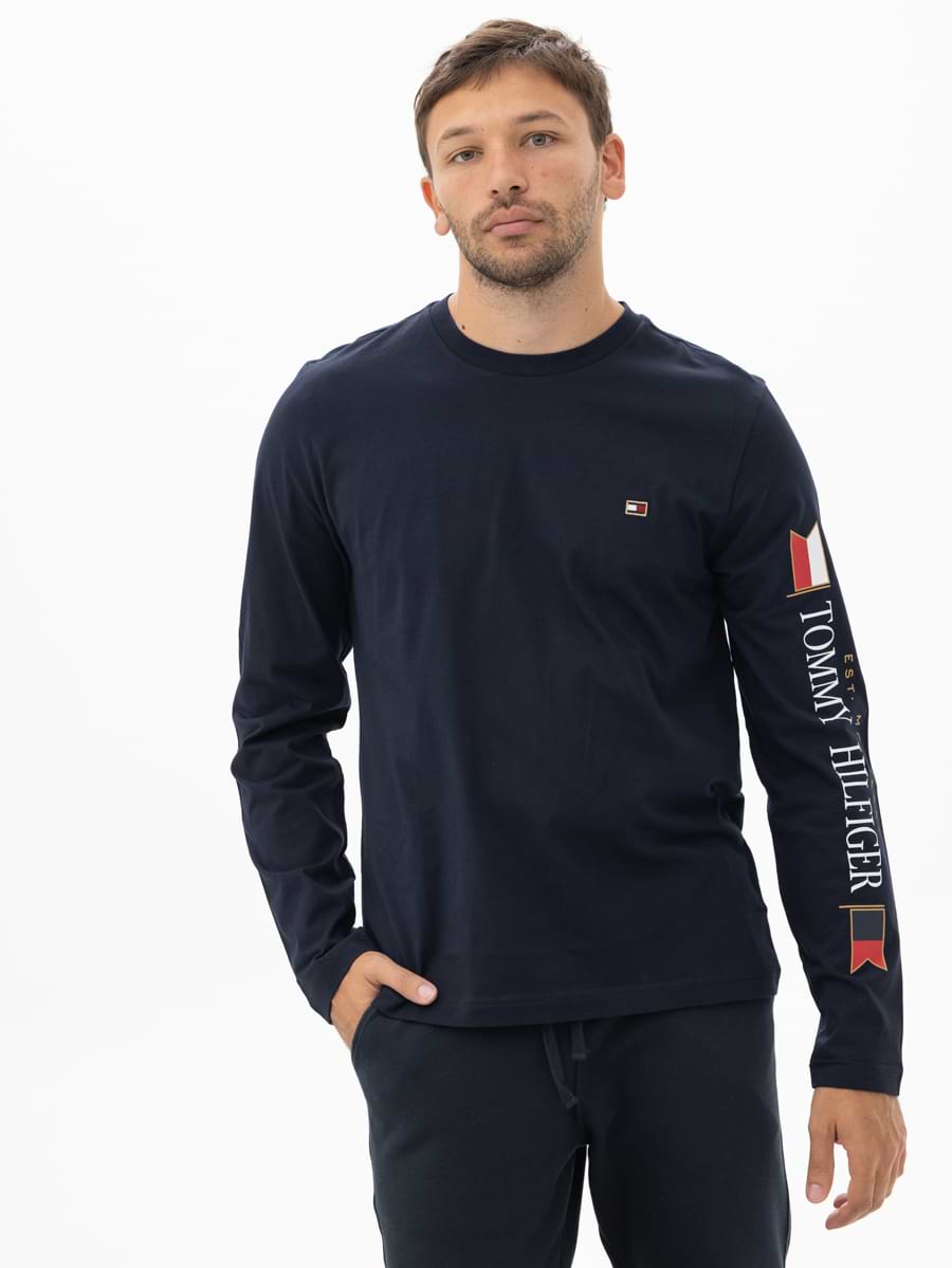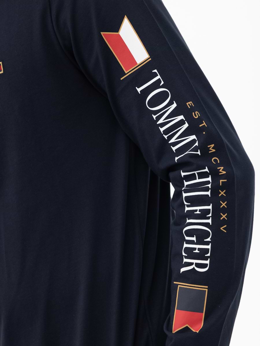 TOMMY HILFIGER blue gold long sleeve t shirt חולצה בצבע כחול כהה שרוול ארוך