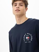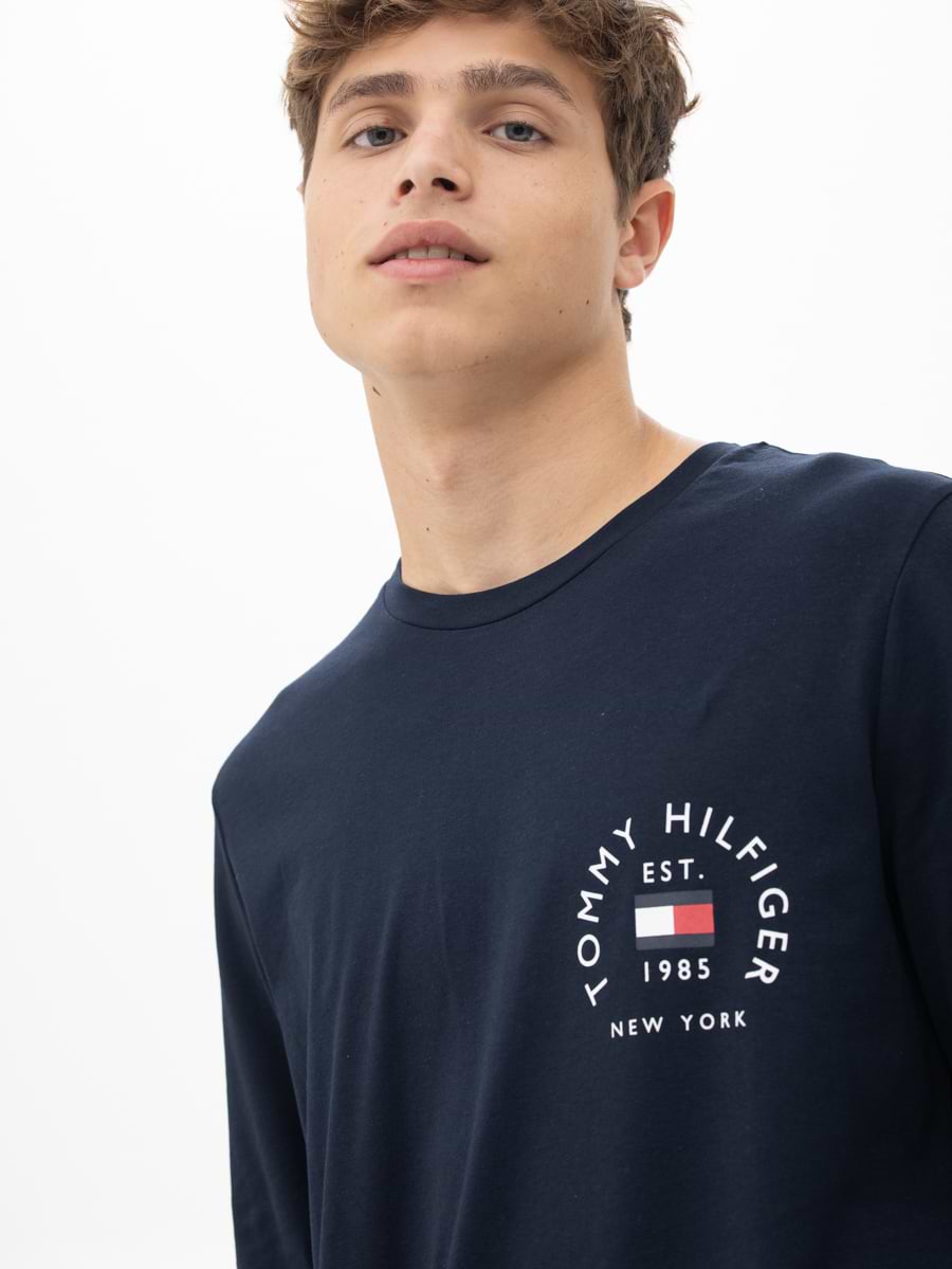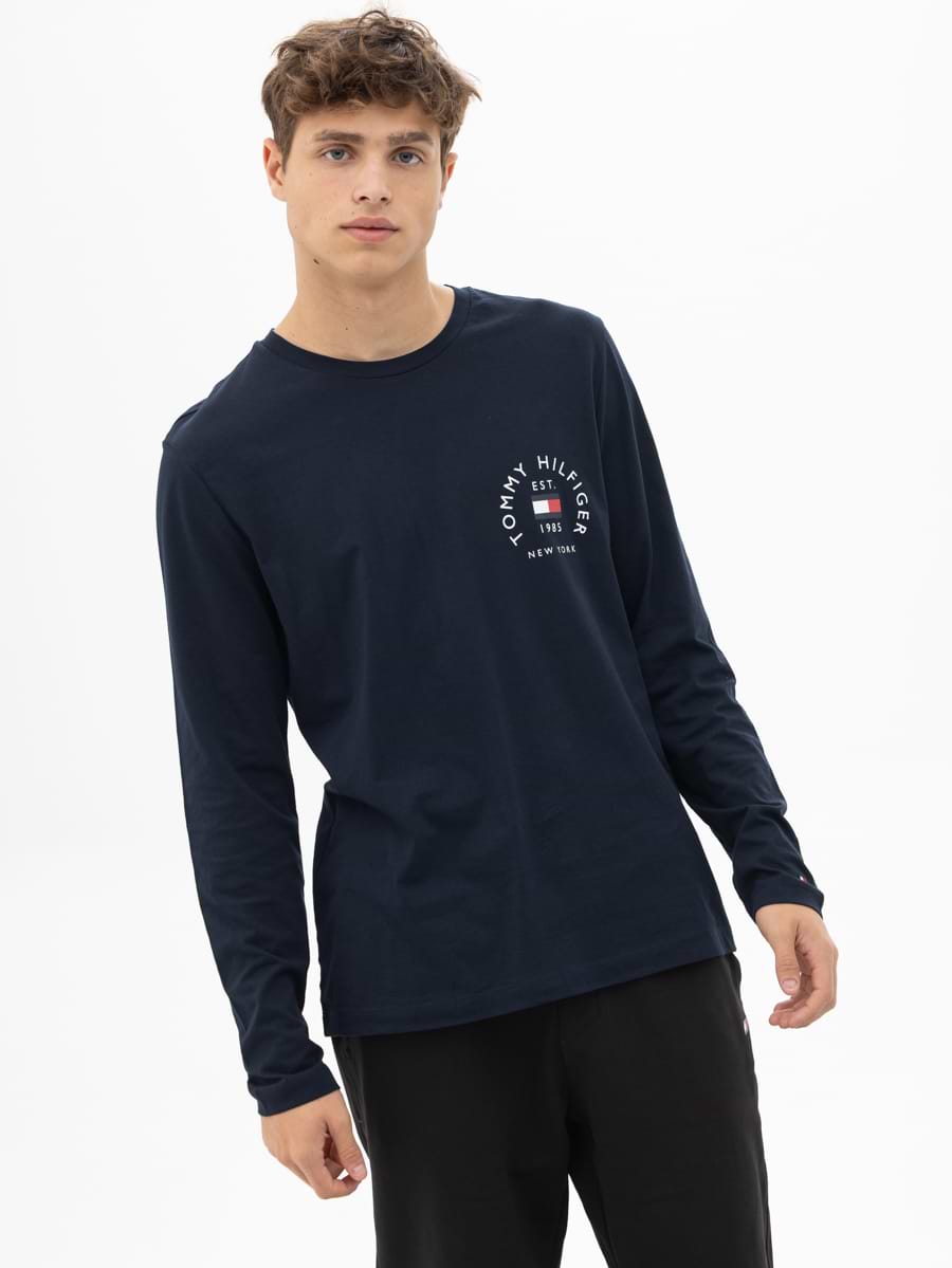 TOMMY HILFIGER blue long sleeve t shirt חולצה בצבע כחול כהה עם עיגול המותג שרוול ארוך