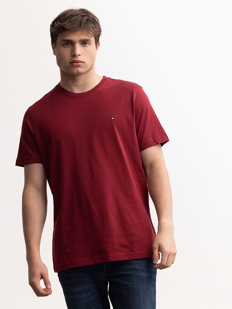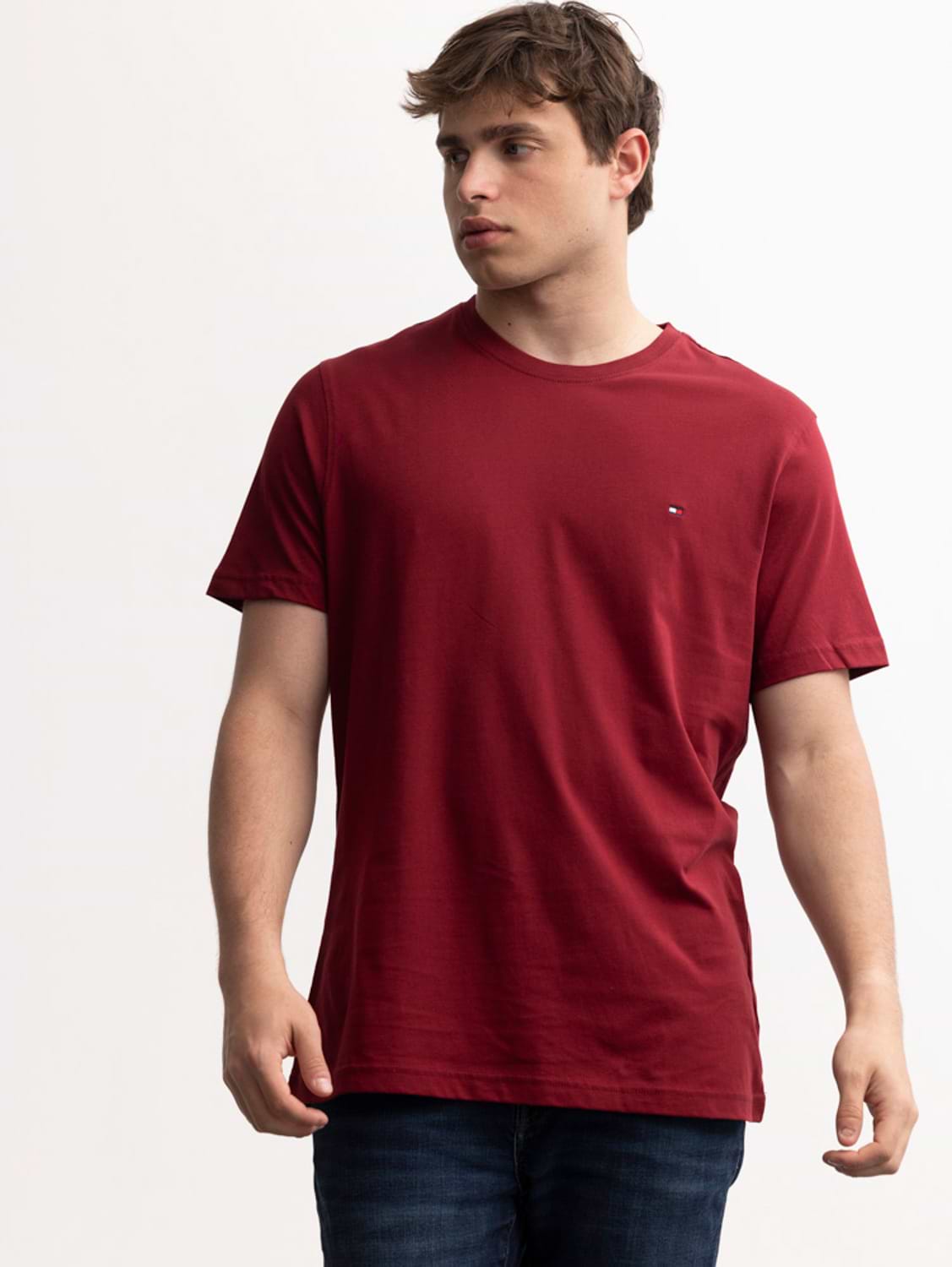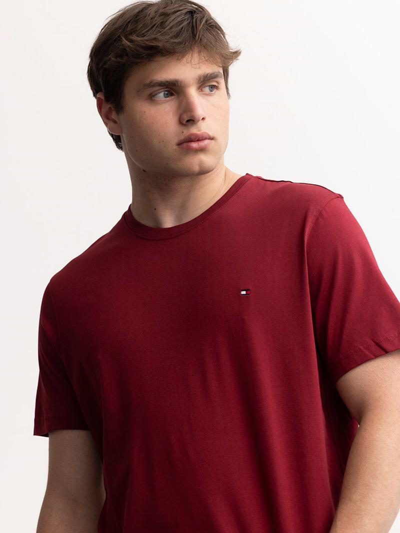 TOMMY HILFIGER bourduex t shirt חולצת בייסיק עם לוגו קטן בצבע בורדו