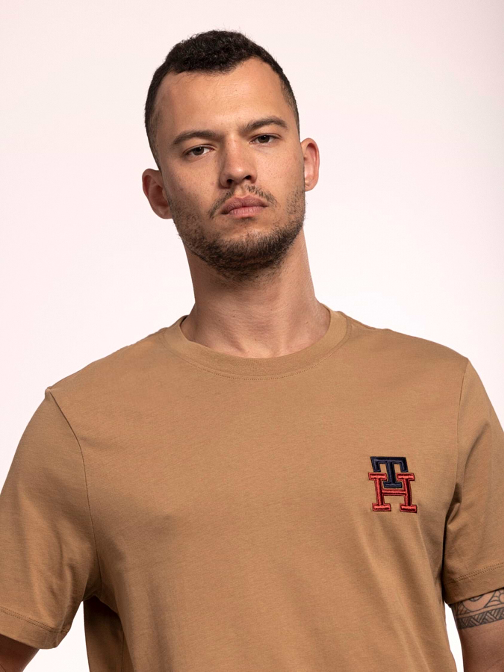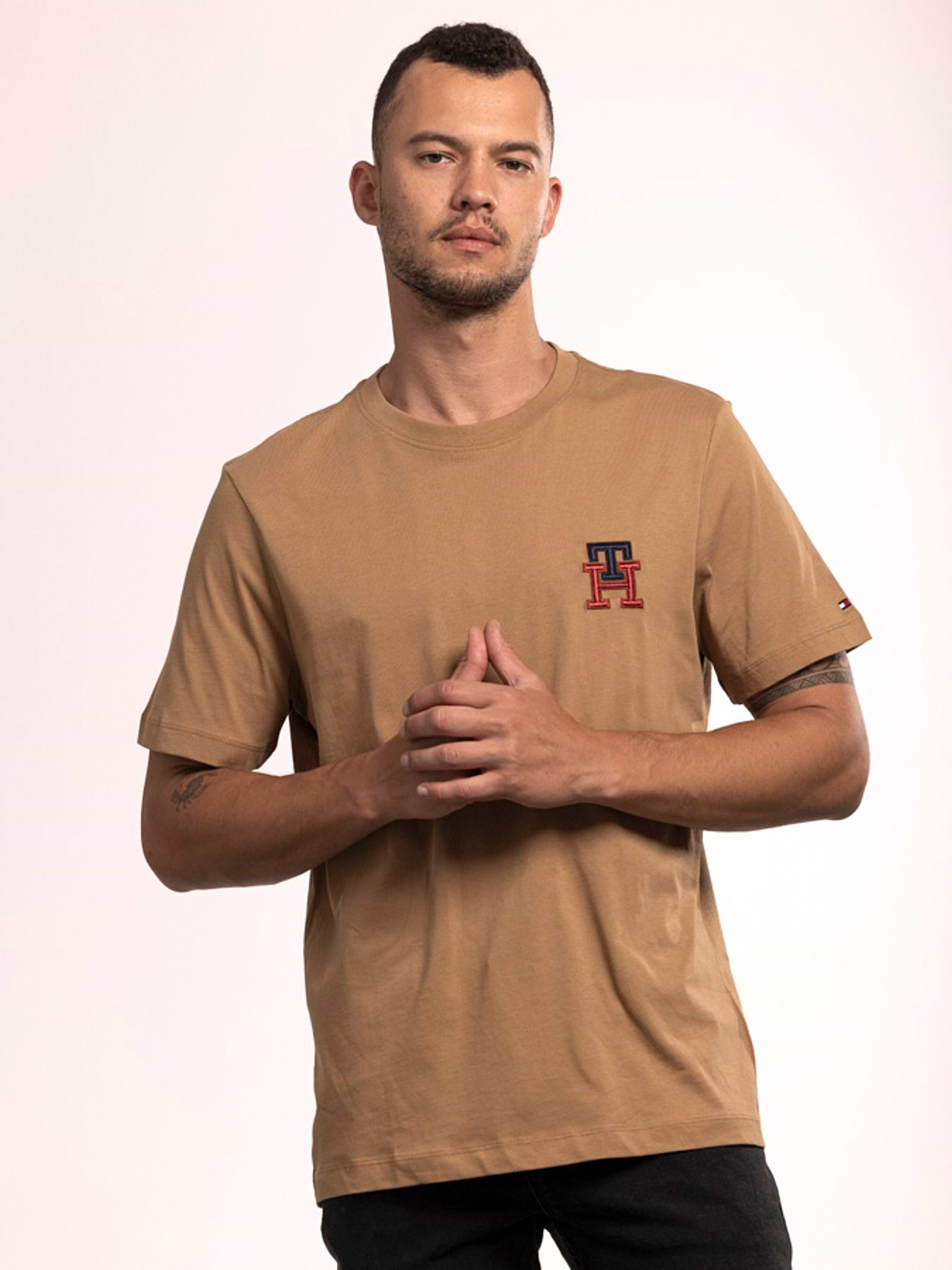 TOMMY HILFIGER brown t shirt small logo TH חולצה בצבע חום לוגו TH רקום