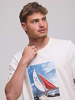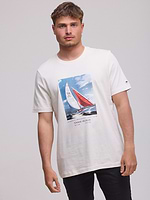 TOMMY HILFIGER cream big logo t shirt חולצה בצבע שמנת עם הדפס בחזית המוצר אונייה