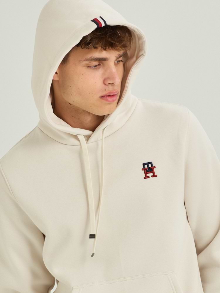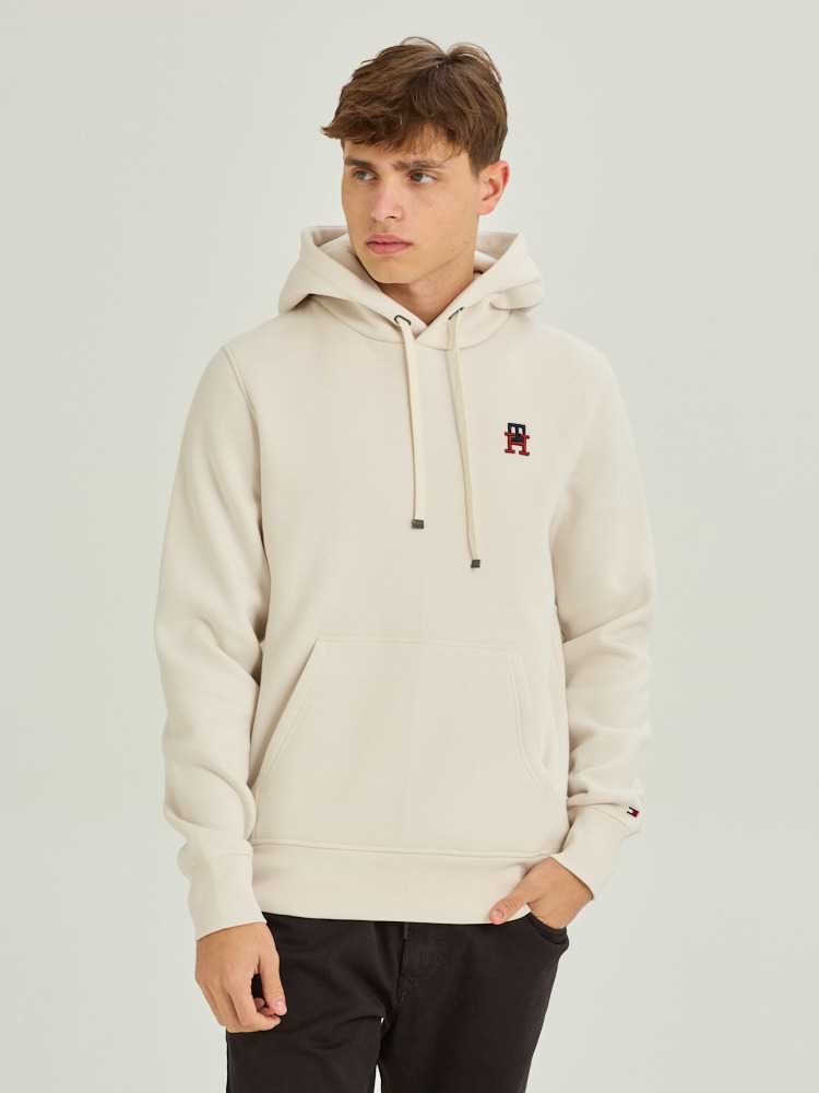TOMMY HILFIGER stone hoodie small logo th קפוצון בצבע אבן לוגו TH קטן