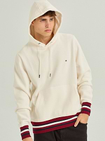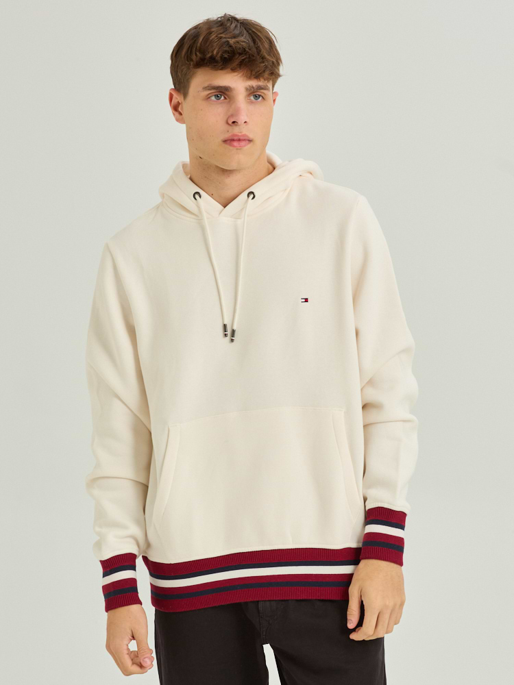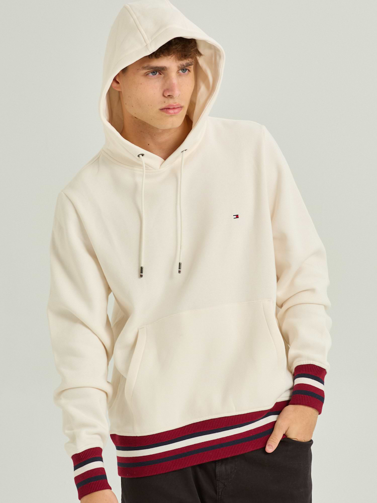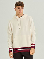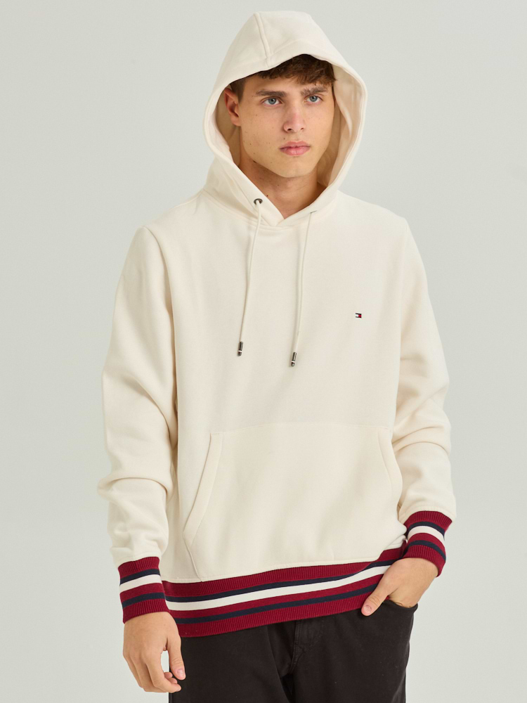 TOMMY HILFIGER cream red hoodie small logo קפוצון בצבע קרם עם פסים אדום בשרוול