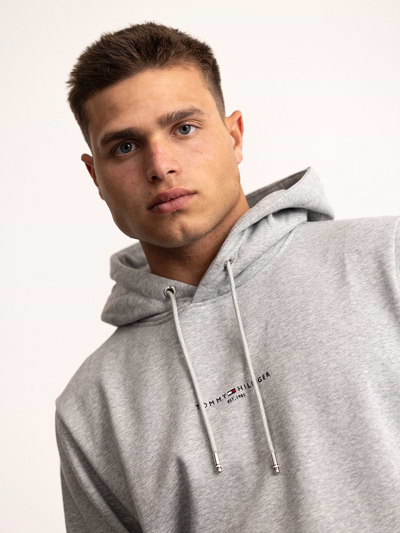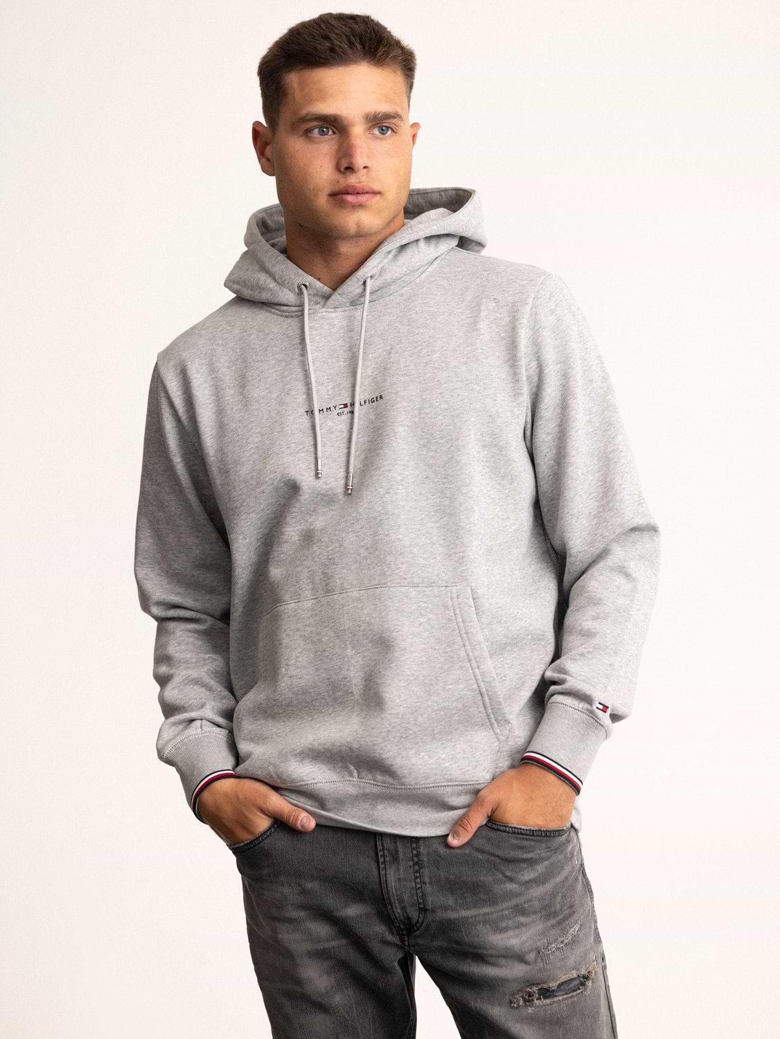 TOMMY HILFIGER hoodie gray small center logo קפוצון בצבע אפור עם לוגו קטן במרכז המוצר