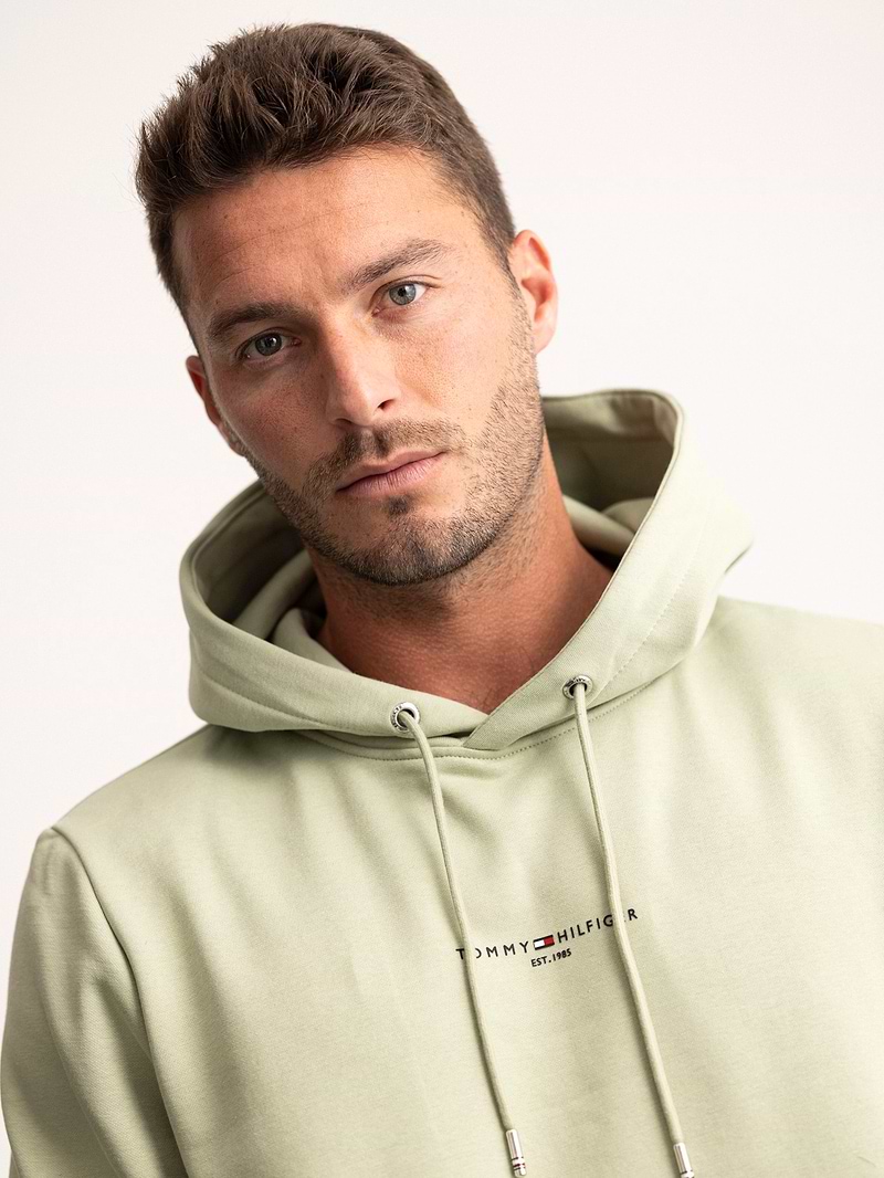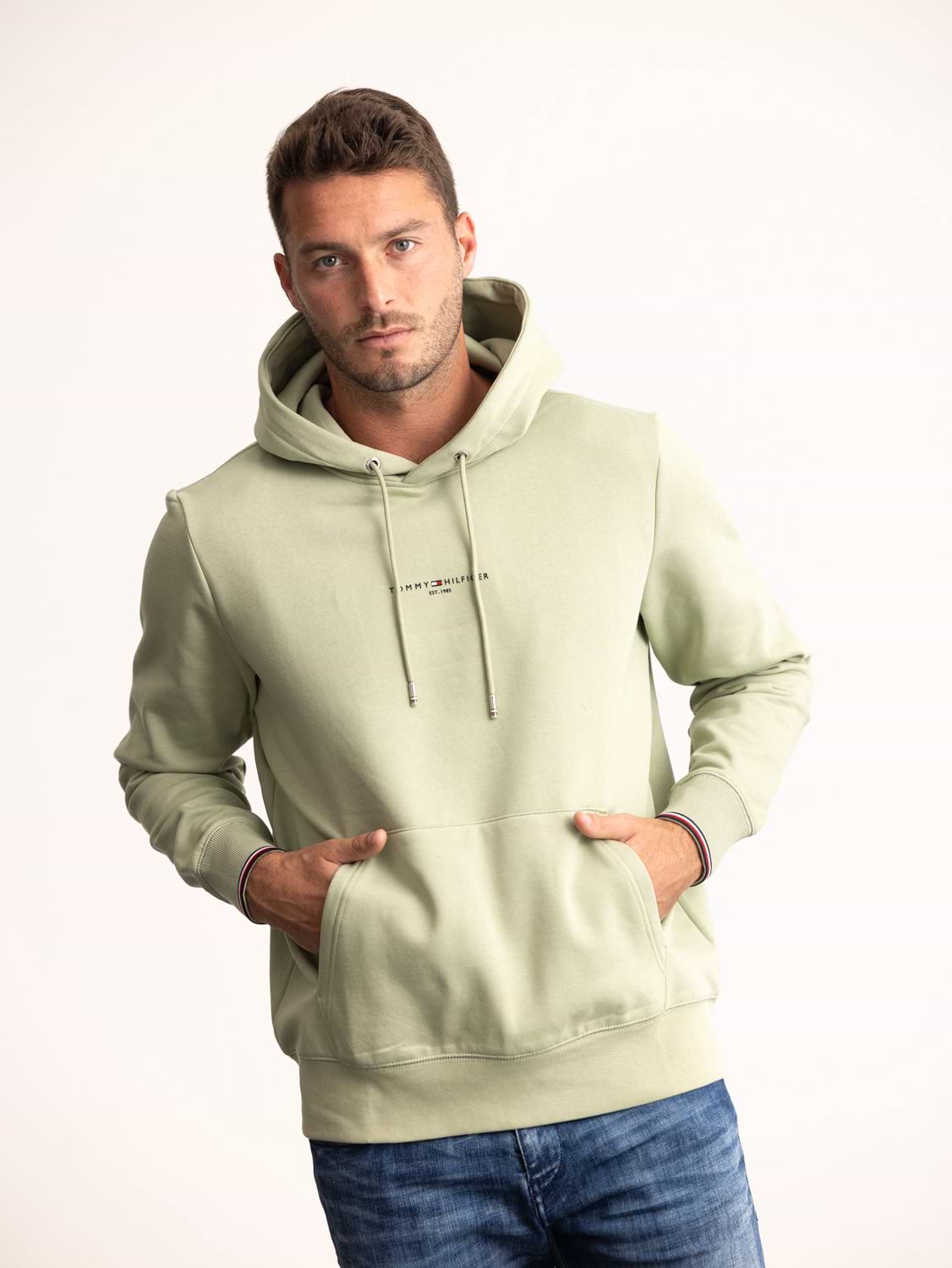 TOMMY HILFIGER hoodie green small center logo קפוצון בצבע ירוק פיסטוק עם לוגו קטן במרכז המוצר