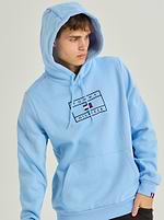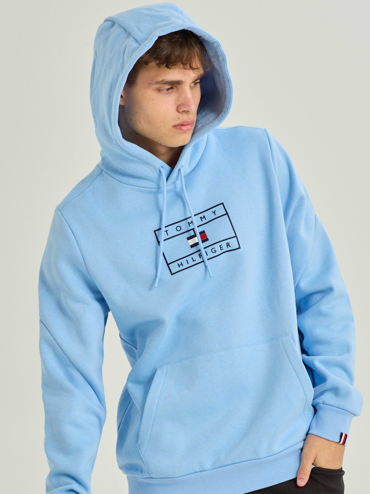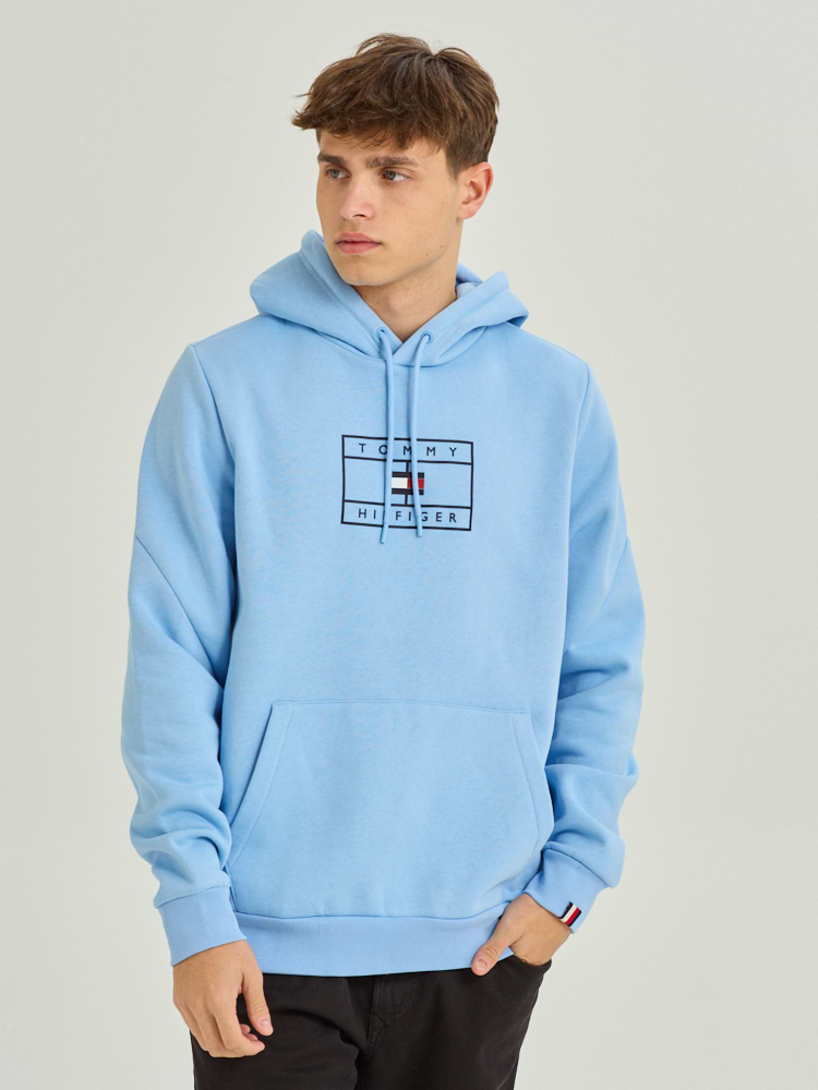 TOMMY HILFIGER hoodie light blue square קפוצון בצבע תכלת עם לוגו ריבוע בחזית