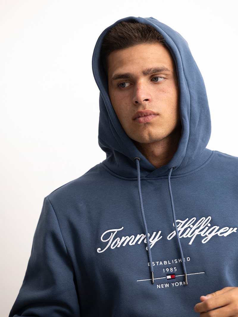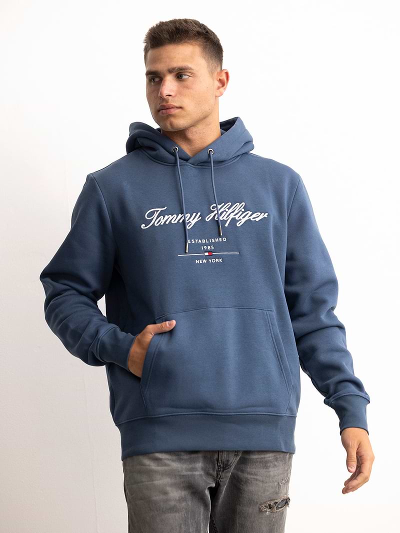 TOMMY HILFIGER ligh blue big logo hoodie קפוצון בצבע תכלת רקמה בחזית המוצר