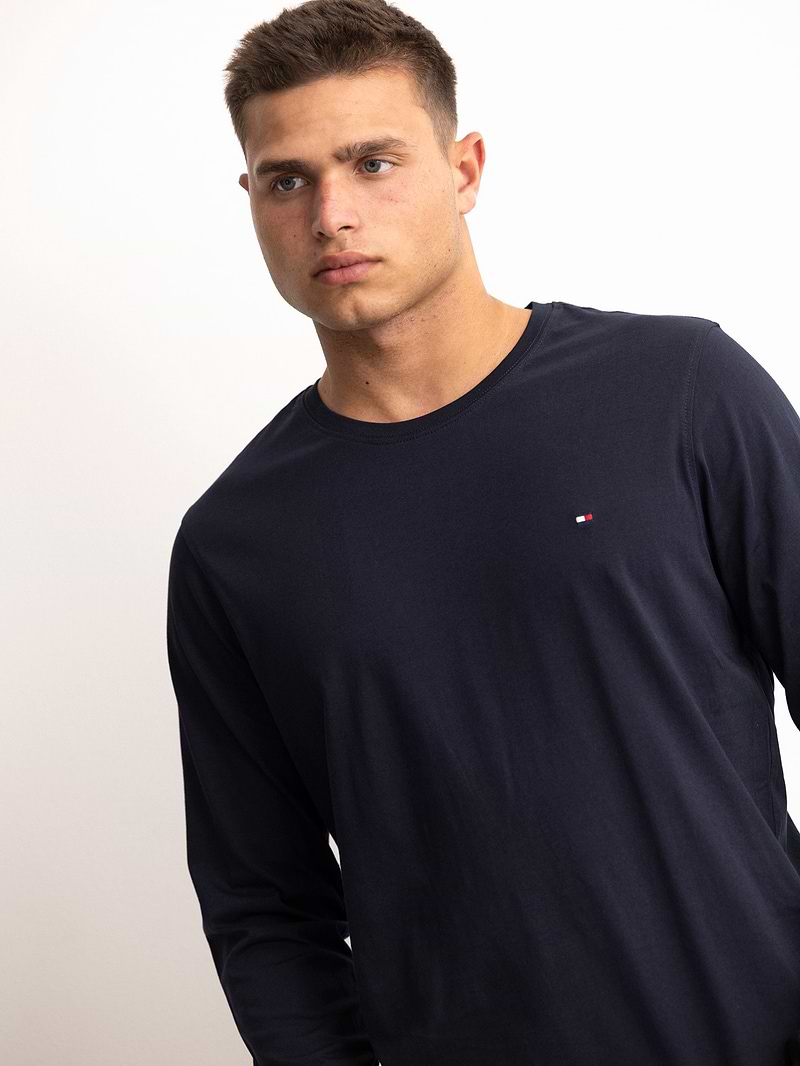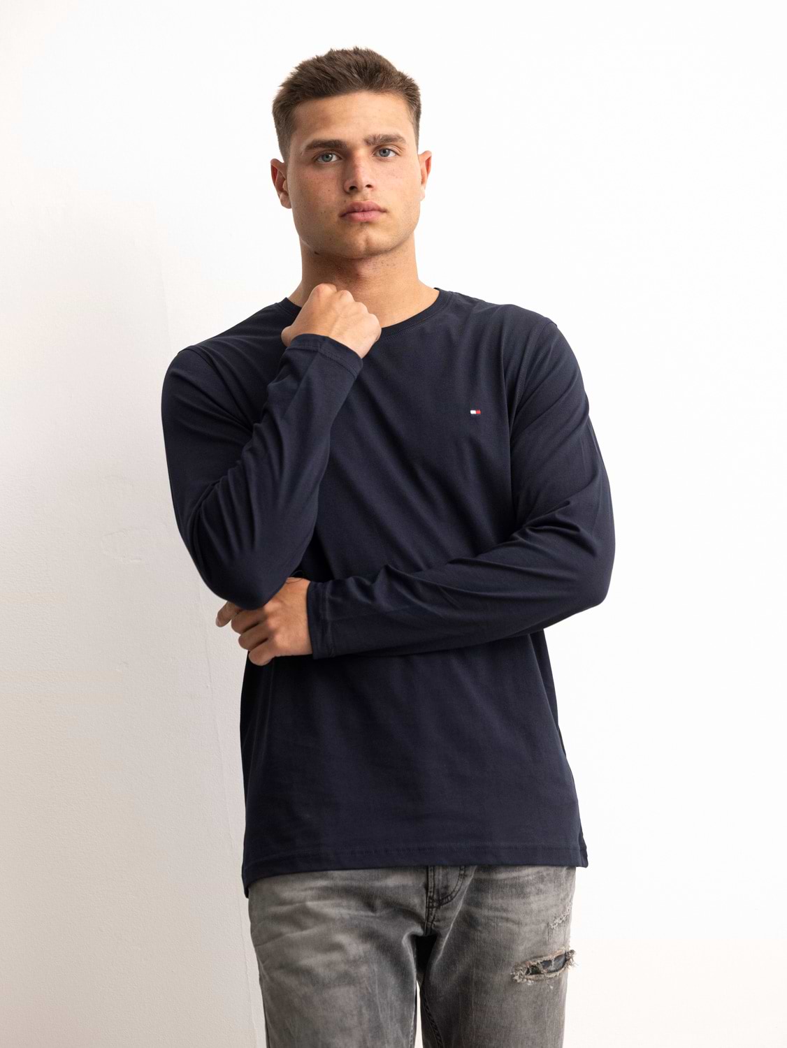 TOMMY HILFIGER logo sleeve t shirt long sleeve חולצה ארוכה בצבע נייבי עם לוגו קטן צידי