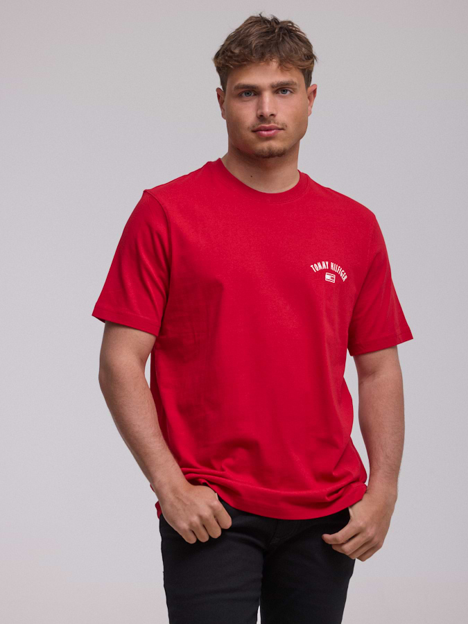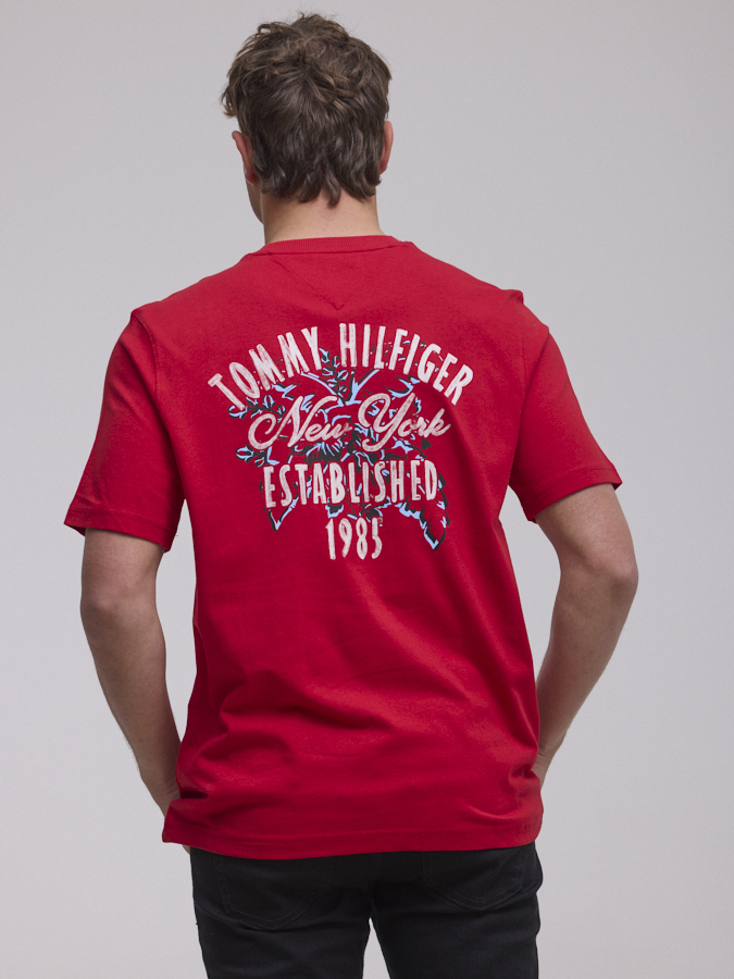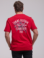 TOMMY HILFIGER logo t shirt חולצה בצבע אדום הדפס קטן צידי ולוגו בגב ניו יורק